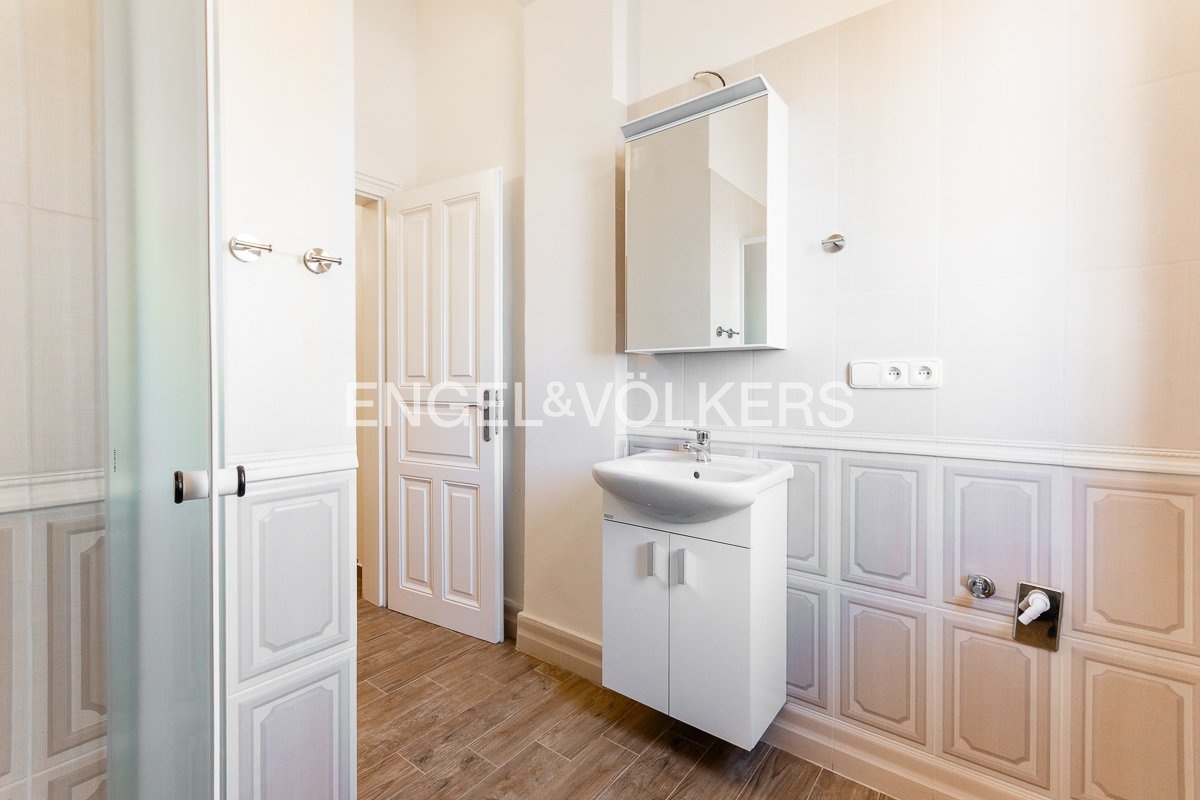 Podlahy v bytě: vinylové, dřevěné parkety. Okna orientovaná do ulice jsou dřevěná špaletová, do dvora dřevěná s dvojsklem. Dům se nachází v těsné blízkosti MHD.
