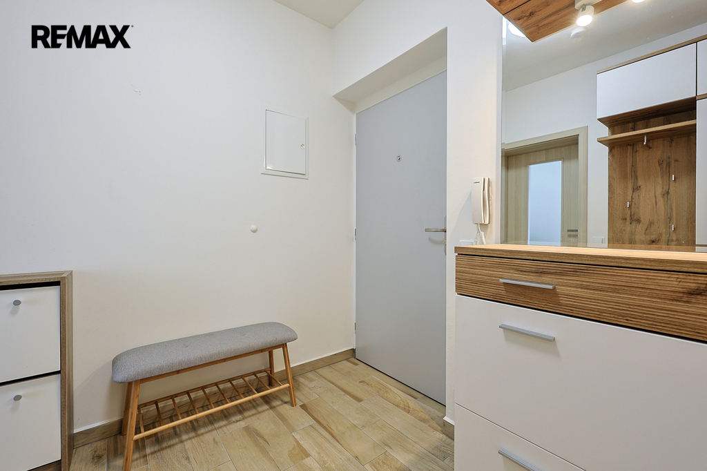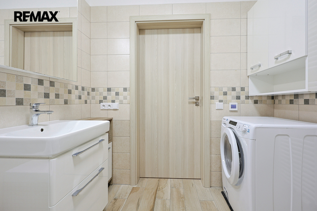 Vybavení bytové jednotky: lednice s mrazákem, el. trouba, myčka, indukční varná deska, mikrovlnná trouba, komínová digestoř, pračka. Byt disponuje nadstandardním designem (plovoucí podlahy, zárubně, dveře).