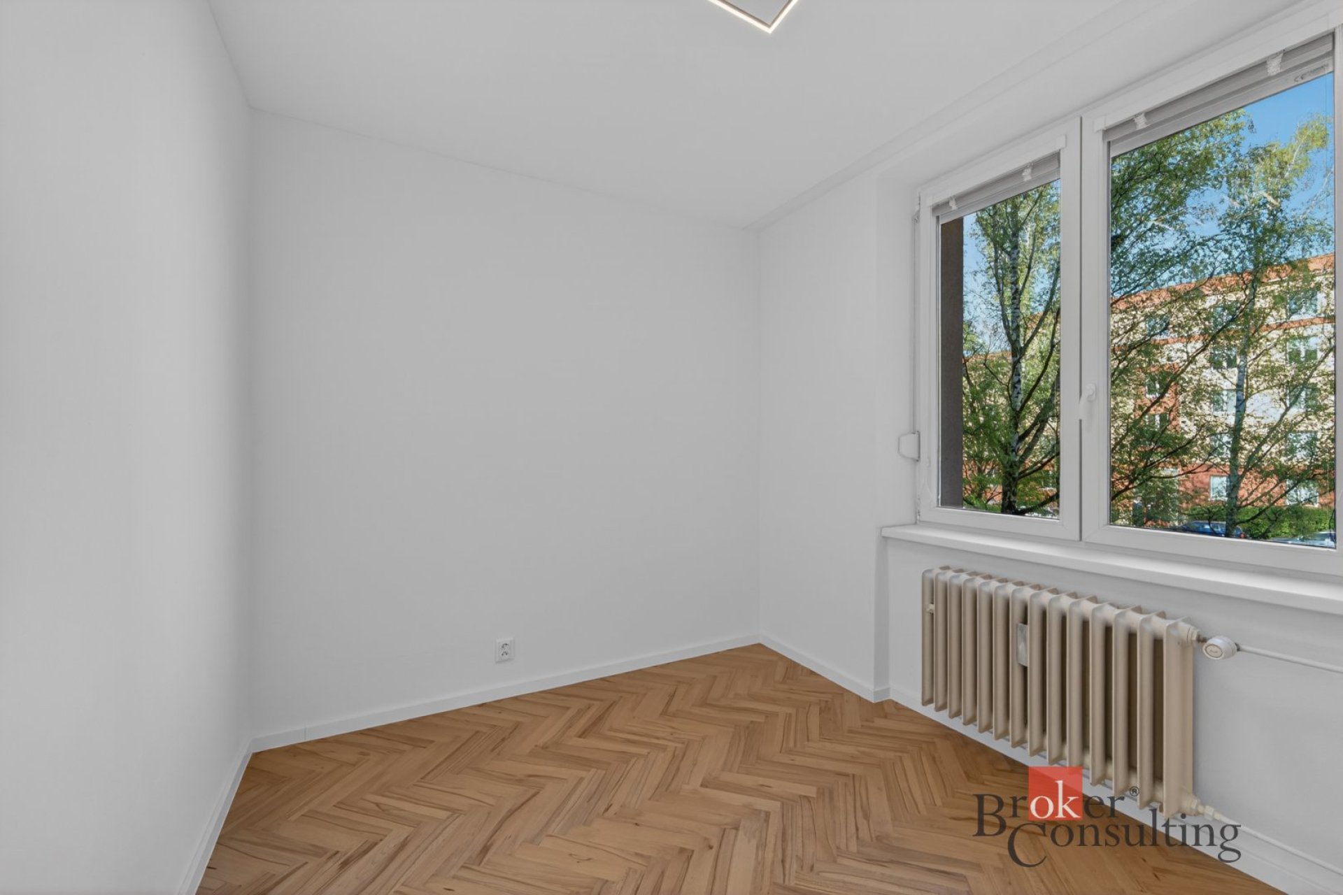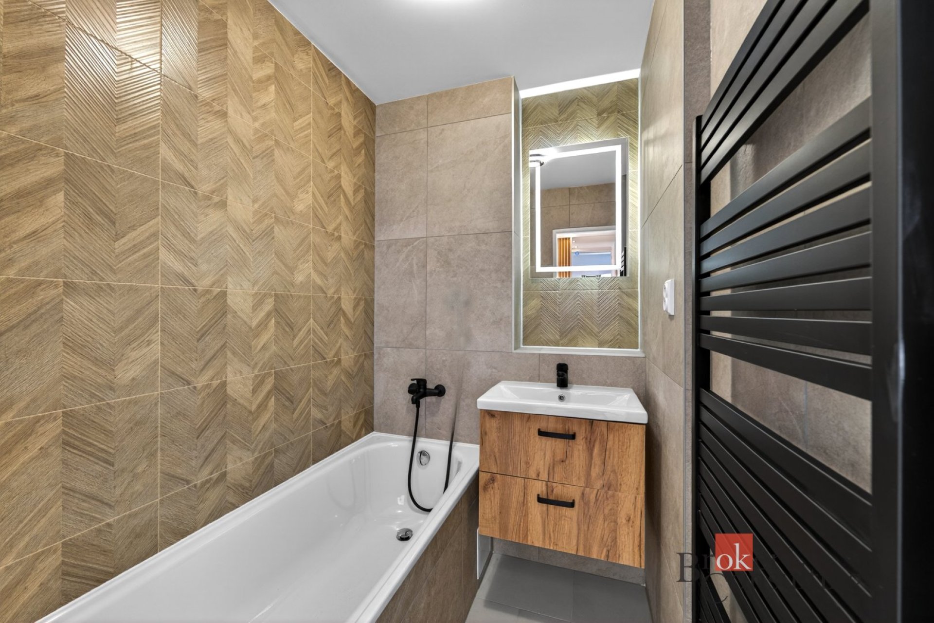 Byt prošel kompletní rekonstrukcí a nabízí komfortní bydlení bez nutnosti dalších investic. Dominantou bytu je nová kuchyňská linka na míru, která je plně vybavena vestavěnými spotřebiči – indukční varná deska s digestoří, trouba, lednice s mrazákem a myčka nádobí.