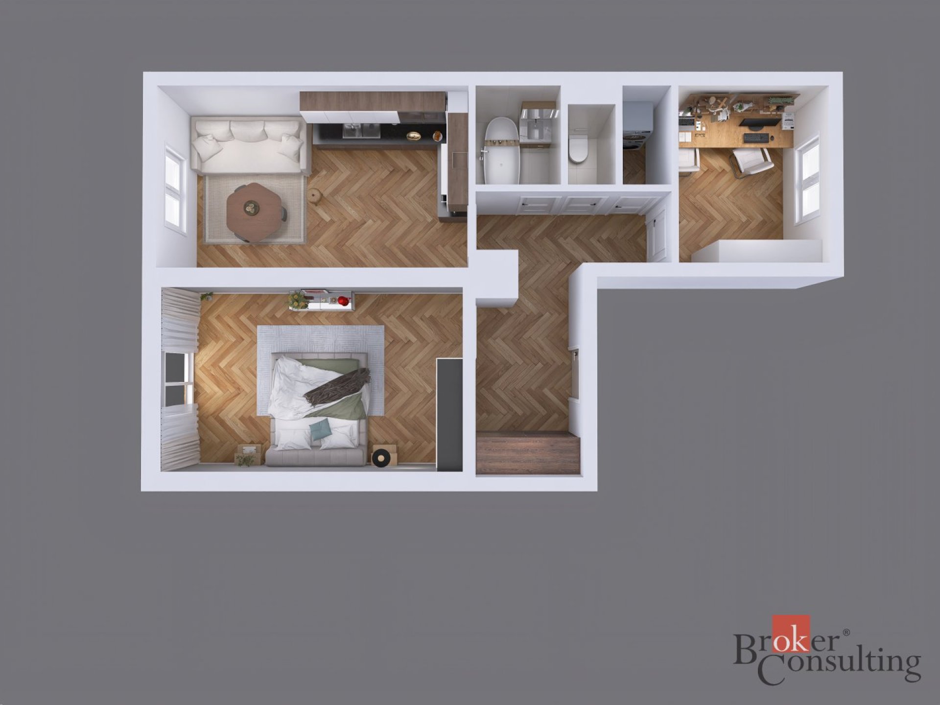 K pronájmu nabízíme moderní a kompletně zrekonstruovaný byt o dispozici 3+kk s užitnou plochou 60 m², který se nachází ve 2. nadzemním podlaží cihlového domu na adrese Francouzská třída 1920/27, Plzeň – Slovany.