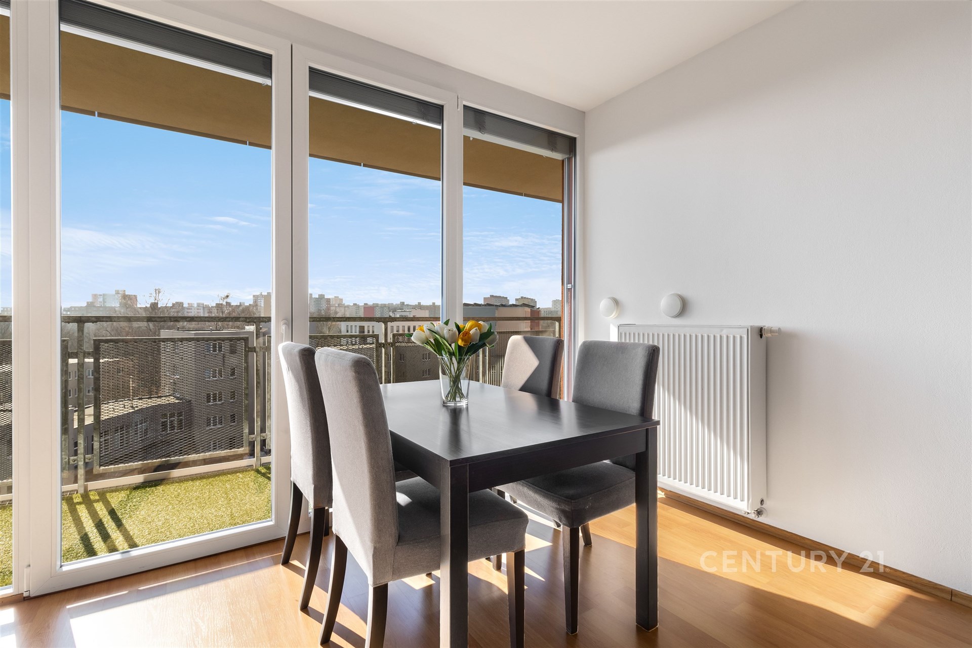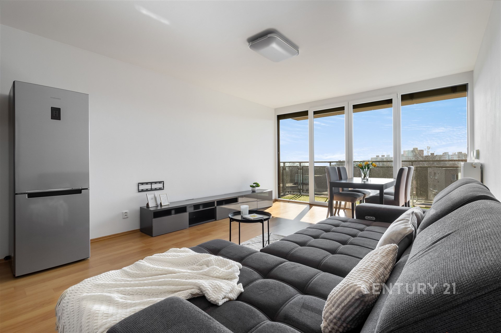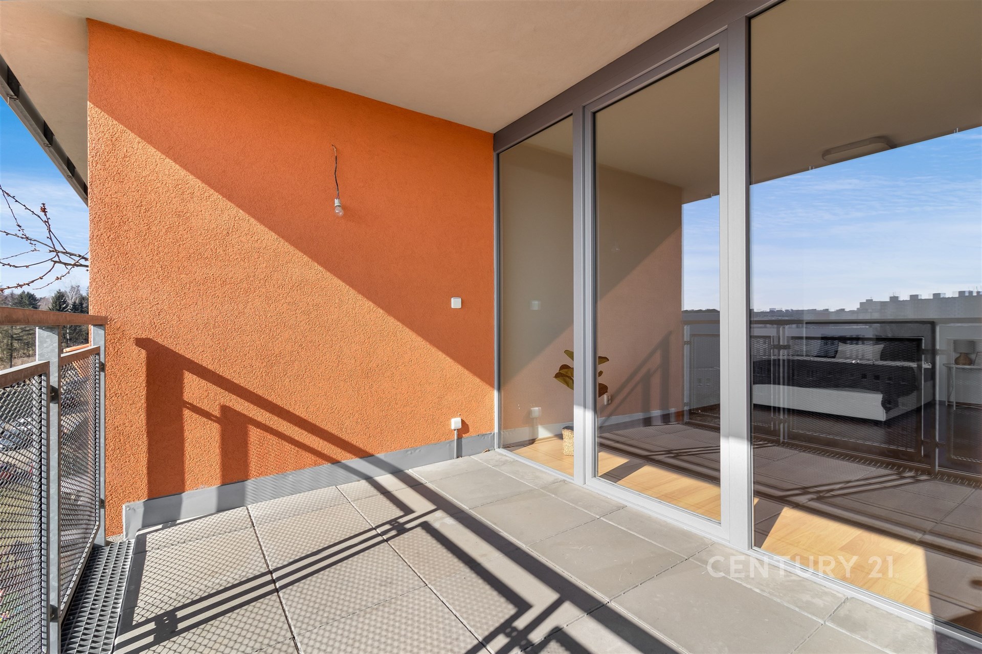 Obývací pokoj s kuchyňským koutem disponuje moderní kuchyňskou linkou vč. lednice, myčky nádobí, trouby, digestoře a elektrické varné desky, dále sedací soupravou, televizním stolkem a jídelním stolem se židlemi. Tomuto pokoji vévodí velké francouzské okno s venkovními žaluziemi, které poskytuje celý den sluneční svit. V pěkné ložnici se nachází pohodlná manželská postel a je zde také dostatek prostoru na případný pracovní kout. Koupelna s vanou a umyvadlem je vybavena ještě automatickou pračkou a skříňkou se zrcadlem. Nedílnou součástí bytu je i velmi prostorná oddělená šatna s vestavěnými skříněmi. Lodžii o ploše 12 m², na kterou se dá vstoupit z obývacího pokoje i z ložnice, a která nabízí úžasný výhled na Plzeň, si naprosto zamilujete. Přidanou hodnotou tohoto bydlení je také zabezpečené parkovací stání v podzemní garáži domu i profesionální úklid společných prostor.