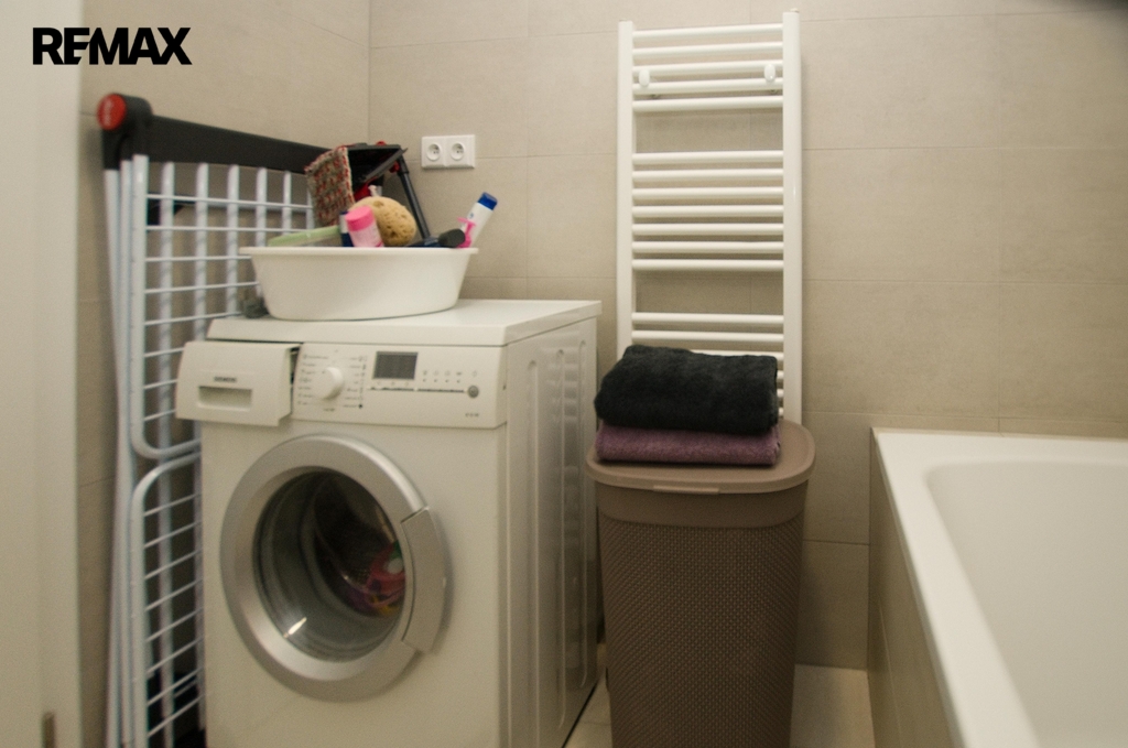 Byt je částečně vybaven: moderní kuchyňská linka se spotřebiči včetně vestavěné myčky, dále je k dispozici pračka.