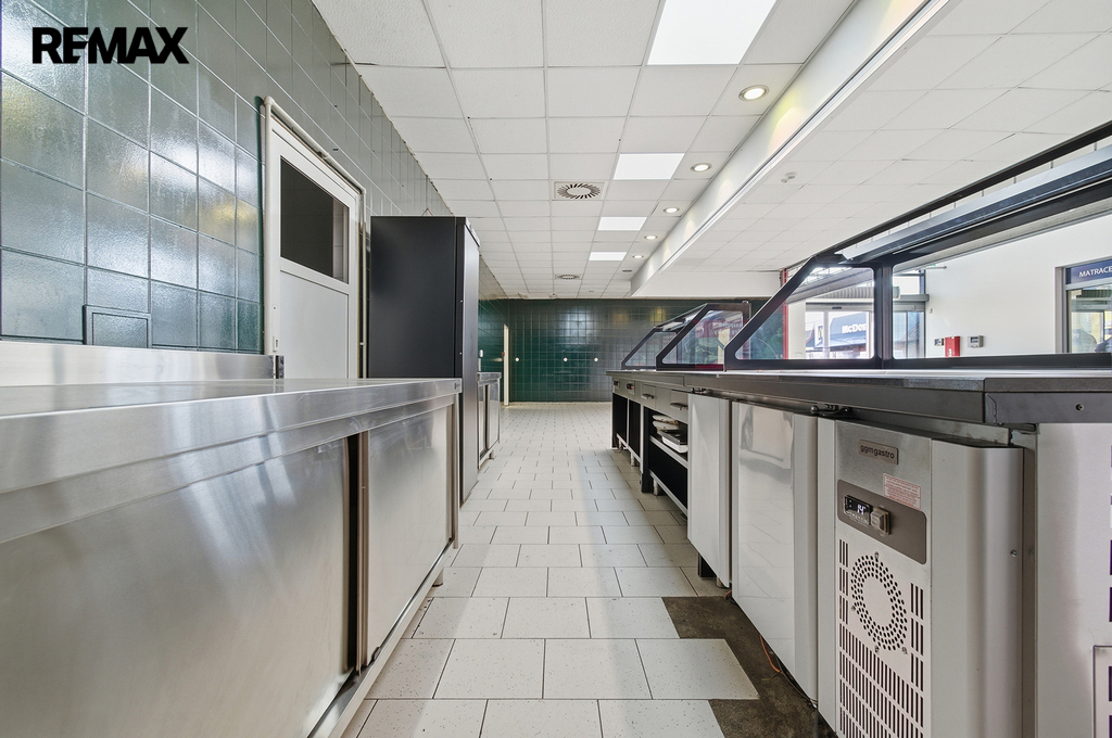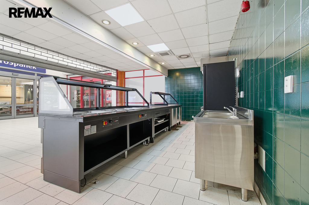 Prostor je ideální pro bistro, rychlé občerstvení či jiný gastro provoz.