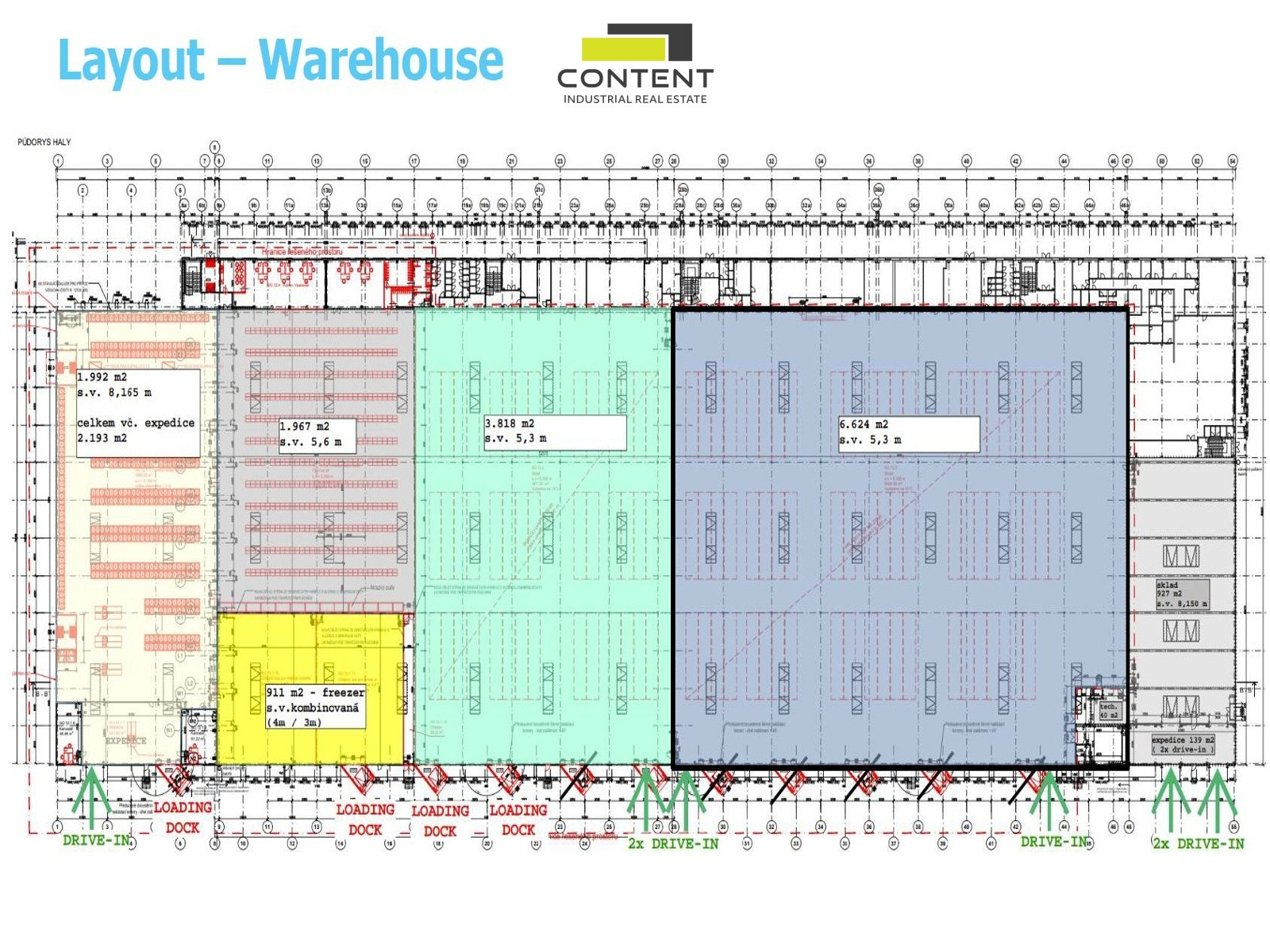 - sociální zázemí a kanceláře jsou k dispozici v rámci objektu, dle specifikace nájemce až 6000 m²