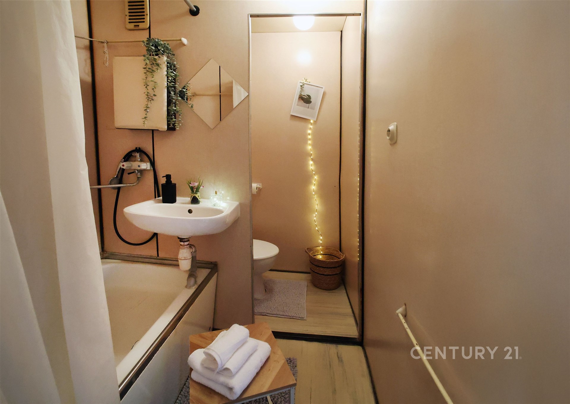 Celý byt dýchá čistotou a domácí pohodou: Prostor s vintage nádechem a dřevěnými dekory, kde najdete vše potřebné od lednice po mikrovlnku. Jídelní stůl s květinami je připraven na vaše klidné snídaně. Útulná koupelna s vanou, kde zapomenete na shon velkoměsta. Zavedený internet, pračka i úložné prostory jsou samozřejmostí. Stačí si jen vybalit kufr a začít bydlet.