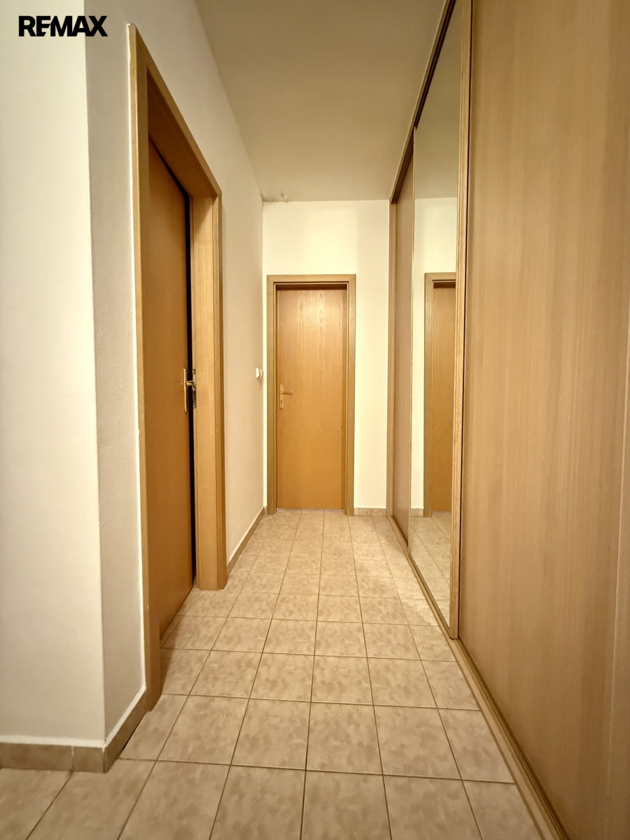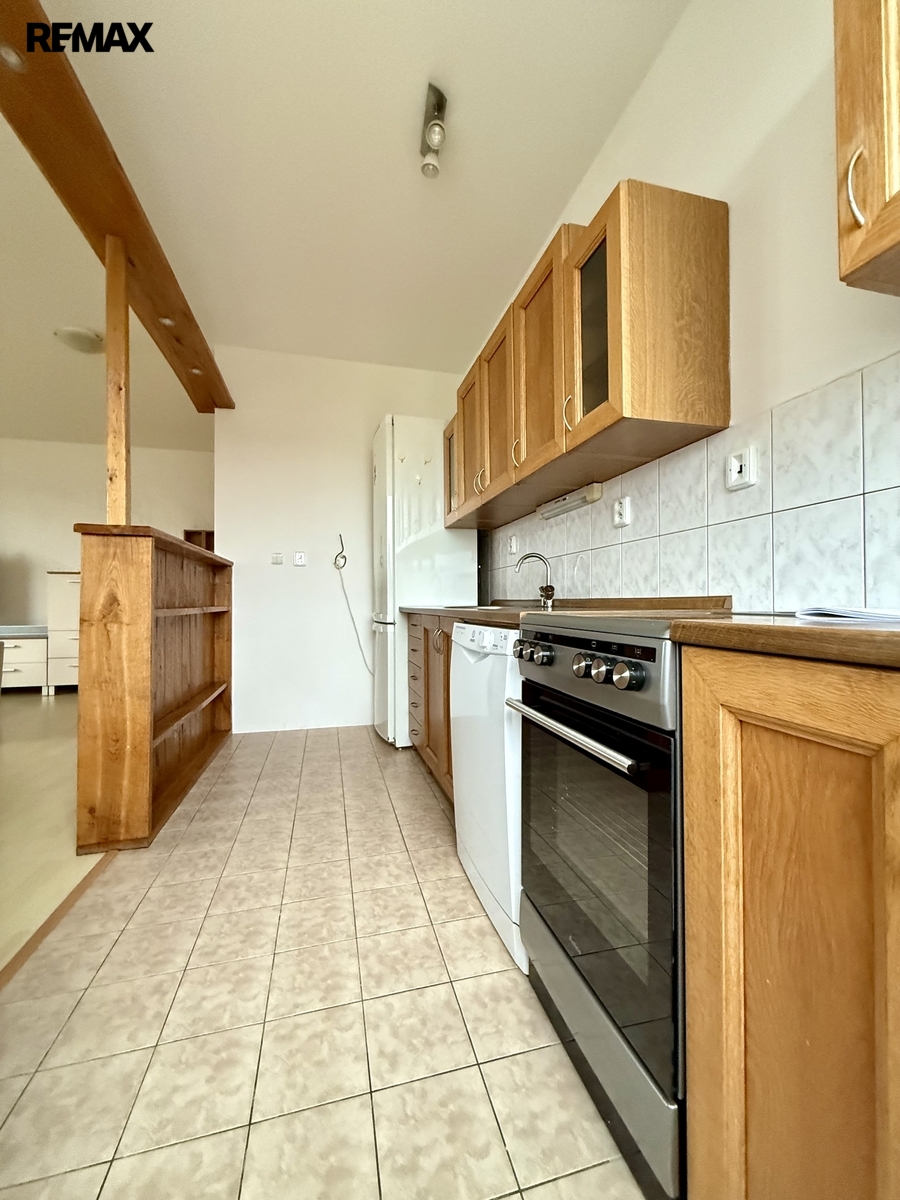 Dispozice: vstupní chodba, samostatné WC, koupelna s vanou a oknem, obývací pokoj s kuchyňským koutem, ložnice a dětský pokoj. Z obývacího pokoje je vstup na balkon.