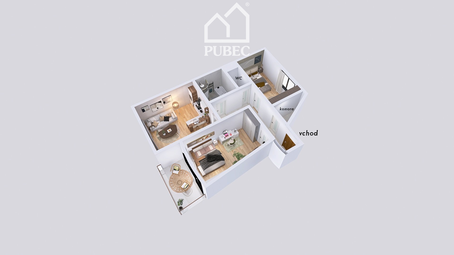 Dominantou bytu je prostorný obývací pokoj s přímým vstupem na balkon, ideální místo pro ranní kávu i klidné večery. Kuchyň je vybavena kuchyňskou linkou se spotřebiči a součástí bytu je také praktická komora, která zvyšuje každodenní komfort bydlení.