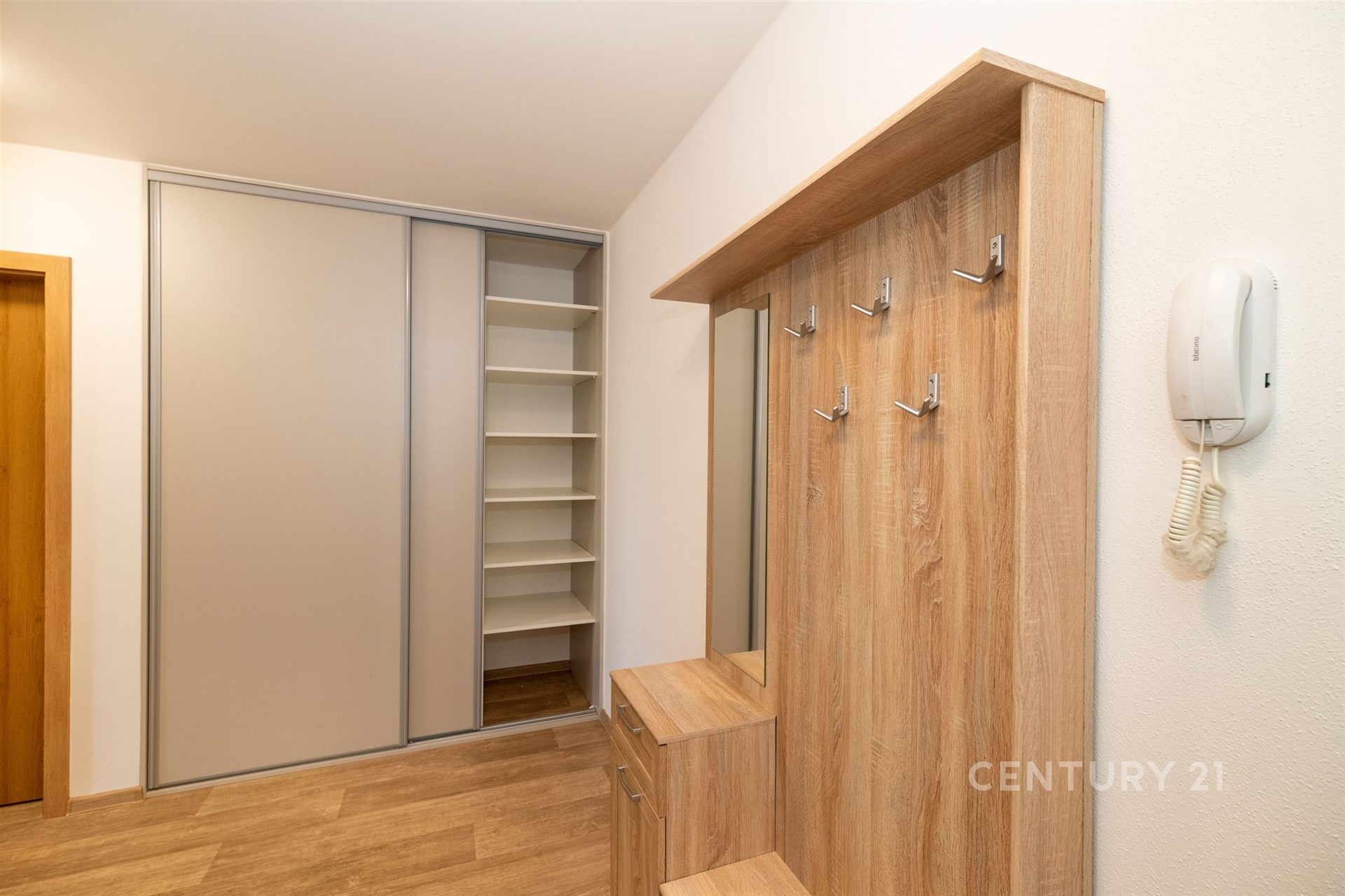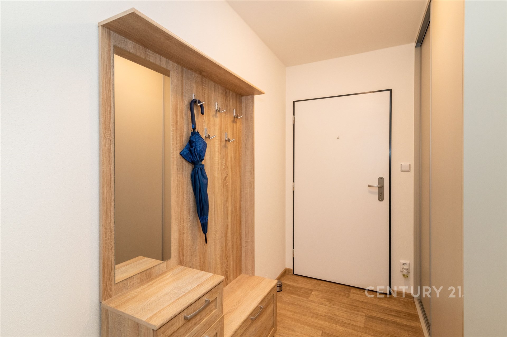 Velkou výhodou jsou tři vestavné skříně, které nabízí dostatek úložného prostoru a kompletně vybavená kuchyň se spotřebiči, takže se můžete nastěhovat bez starostí. Komfort bydlení zvyšují také venkovní elektrické žaluzie, které zajistí soukromí i regulaci světla podle vašich potřeb. Byt je navíc bezbariérový.