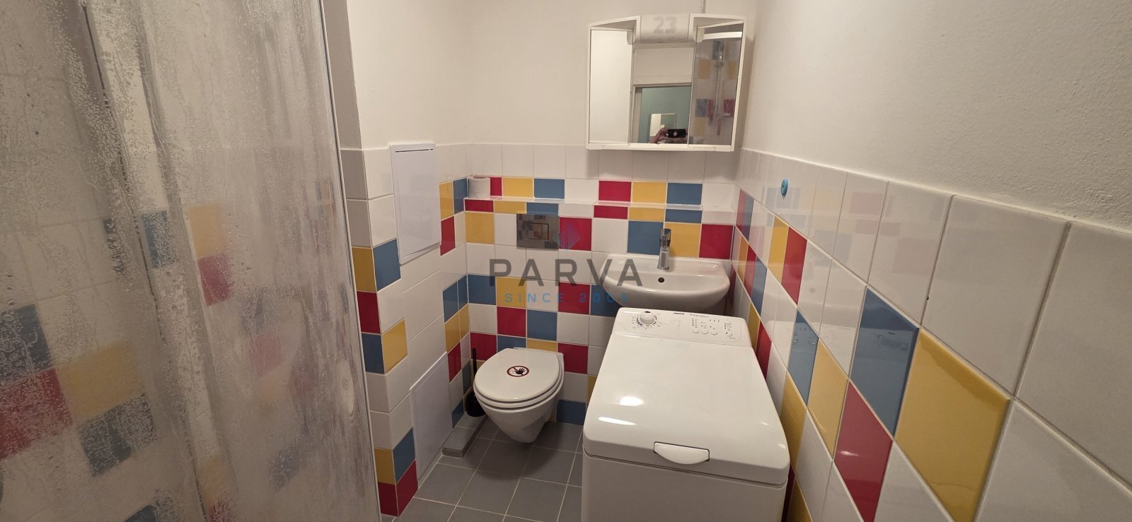 koupelna se sprchovým koutem, WC a pračkou
