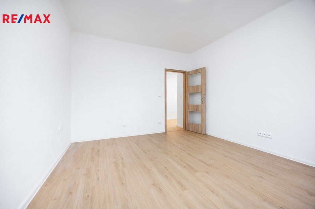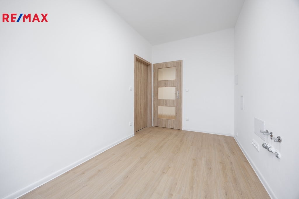 Obývák zdobí francouzské okno – ideální na to, abyste ráno mohli dramaticky roztáhnout závěsy a cítit se jako ve filmu. Kuchyň je připravena k instalaci vlastní linky, takže si můžete splnit sen o kuchyni, ve které budete vařit… nebo si aspoň budete dělat kafe s větším stylem.