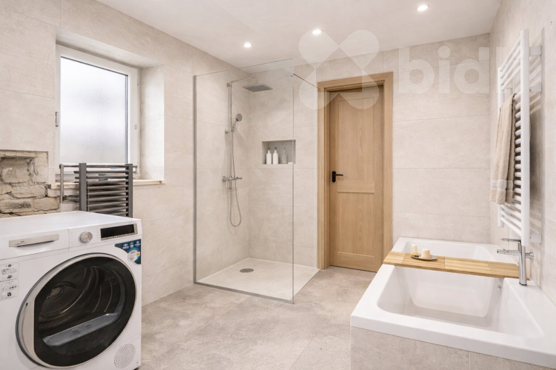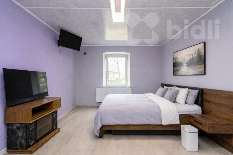 Nemovitost je postavena z cihel a umístěna na vlastním pozemku o výměře 1528 m2, najdete zde i kopanou studnu s dostatkem vody. Ve třetím nadzemním podlaží se nachází podkroví, kde je dostatek místa pro vybudování dalších pokojů. Do domu, který je podsklepený, je přivedena elektřina, novými rozvody voda i odpady, které jsou svedeny do jímky s přepadem do veřejné kanalizace. Ve sklepě je nově vybudovaná kotelna s uhelnou. Teplá voda a ústředně rozvedené vytápění je zajištěno novým automatickým kotlem 38 kW na tuhá paliva. V ceně je zahrnutý nový stavební materiál jako krytina na střechu celého domu, obklady a dlažba, plouvoucí podlahy atd.