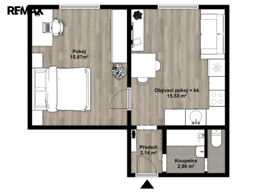 - Dispozice bytu: 1+1