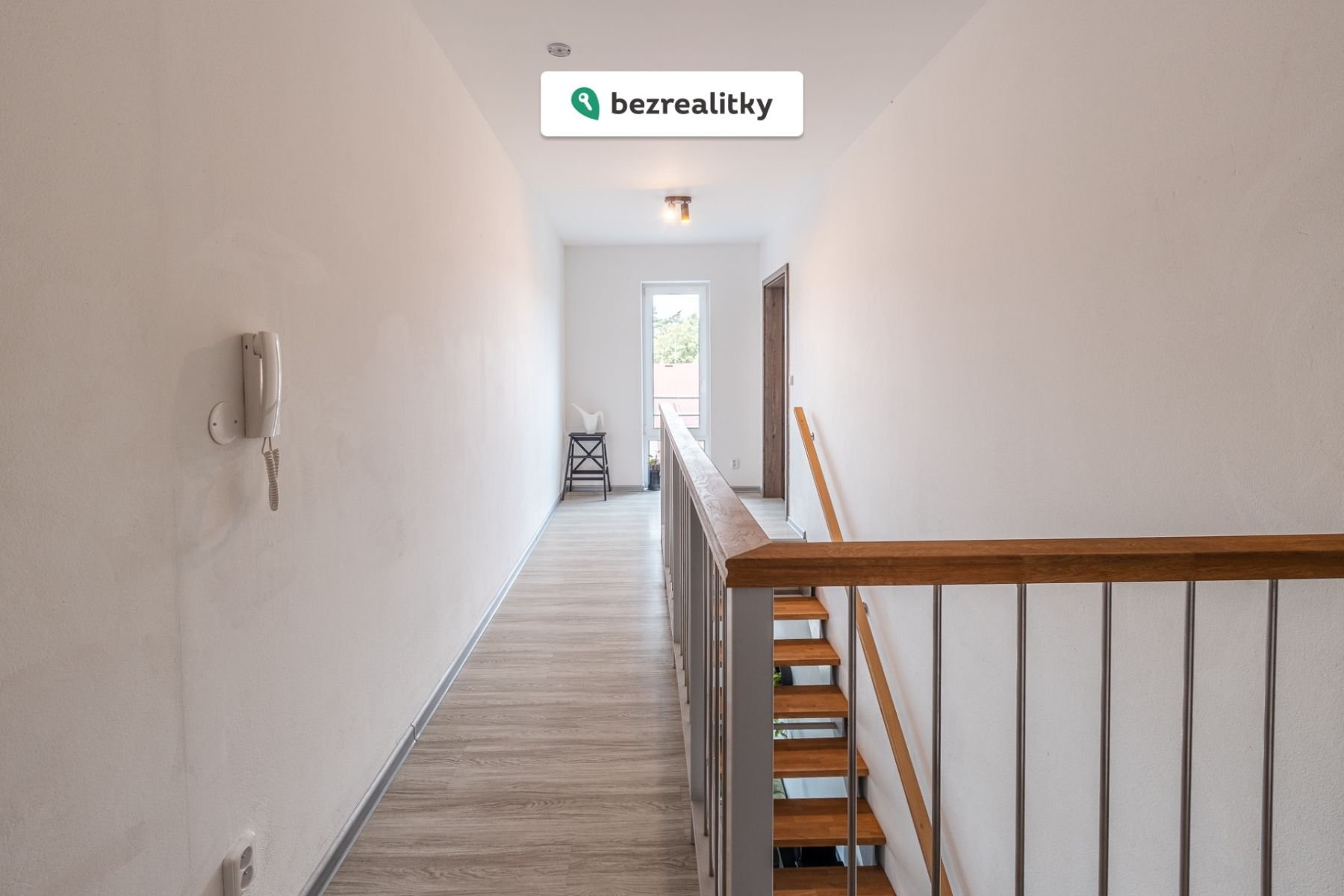 Byt se nachází v 2. a 3. nadzemním podlaží v domě s pouze 4 bytovými a 1 nebytovou jednotkou. Do domu je vstup pouze přes dálkově ovládanou bránu pro vjezd autem či brankou pro pěší. Auto je tak zaparkované v bezpečí a pod střechou.
