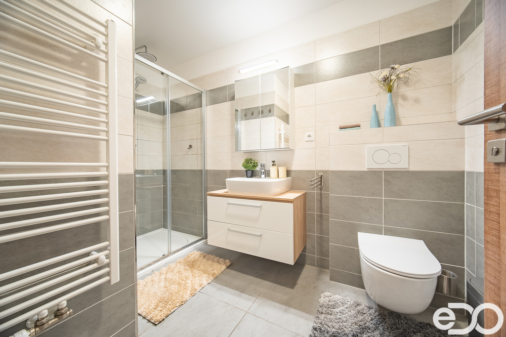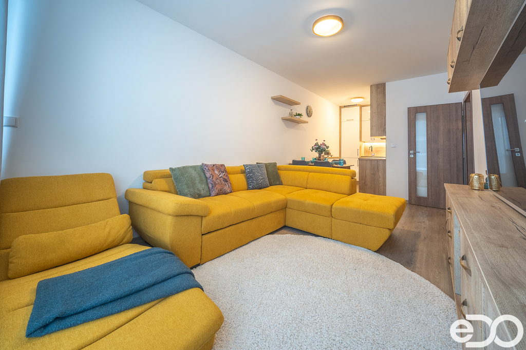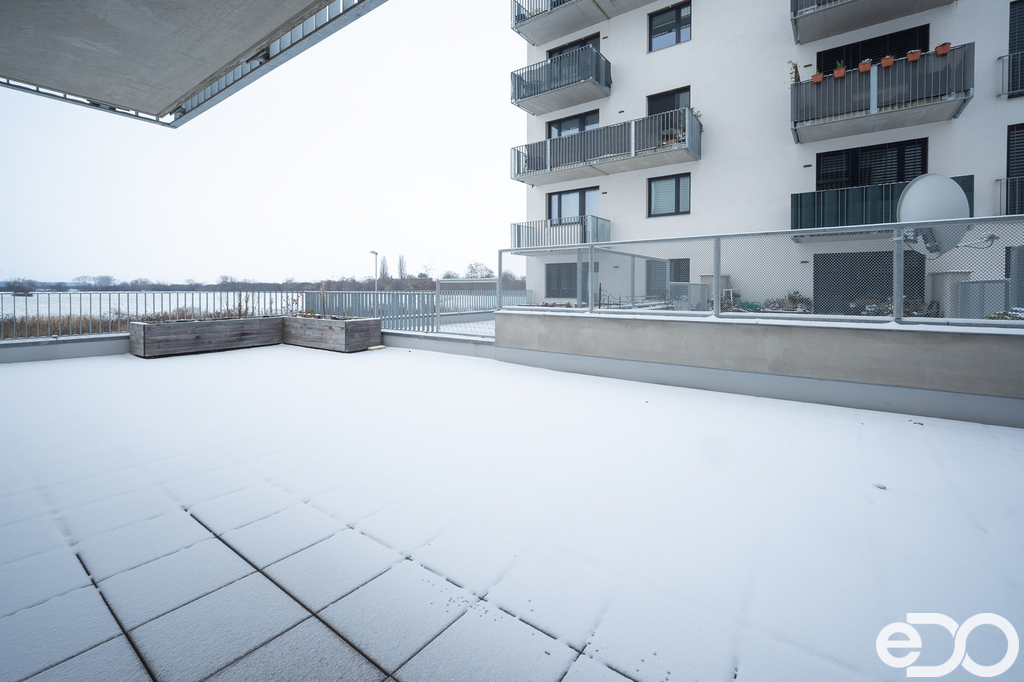 Dispozice je velmi dobře provedená, praktická a vzdušná. Obytná část je přirozeně napojená na terasu, která se stává dalším plnohodnotným prostorem pro každodenní život. V bytě jsou osazeny žaluzie, kvalitní povrchové materiály a moderní vybavení.