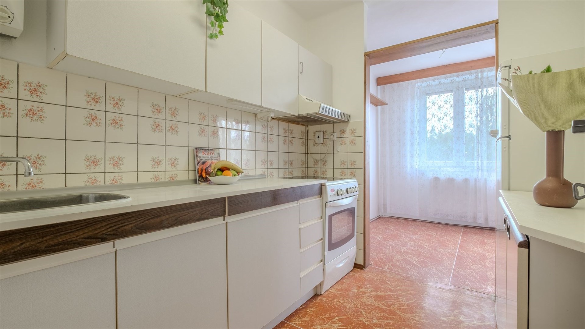 Dispozice zahrnuje kuchyňský kout (s praktickou spíží po ruce) propojený s obývacím pokojem, dvě samostatné a neprůchozí ložnice a koupelnu se samostatnou toaletou po kompletní rekonstrukci, včetně rozvodů vody, odpadu a elektřiny před 4 lety. Z jedné z ložnic je přímý vstup na balkon s velmi příjemným výhledem.