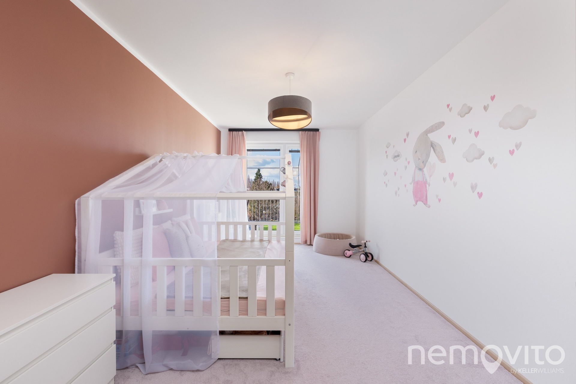 WC je oddělené od koupelny, ve které je vana a místo na pračku a sušičku. Prostorná chodba nabízí ještě prostor pro vestavěnou šatní skříň u vstupu. Hlavní ložnice má k dispozici vlastní šatnu, dětské pokoje o ploše 17 m2 jsou na druhé straně bytu. K bytu náleží ještě ocelová sklepní kóje (5 m2) a garážové stání v suterénu domu. V něm nechybí také prostor na kola a kočárky. Přístup je bezbariérový.