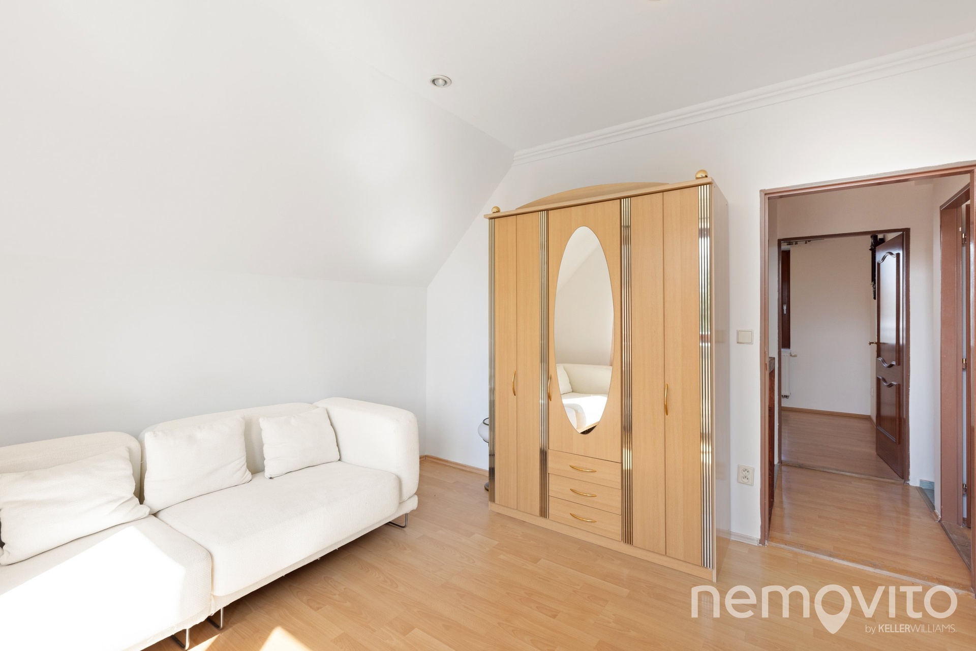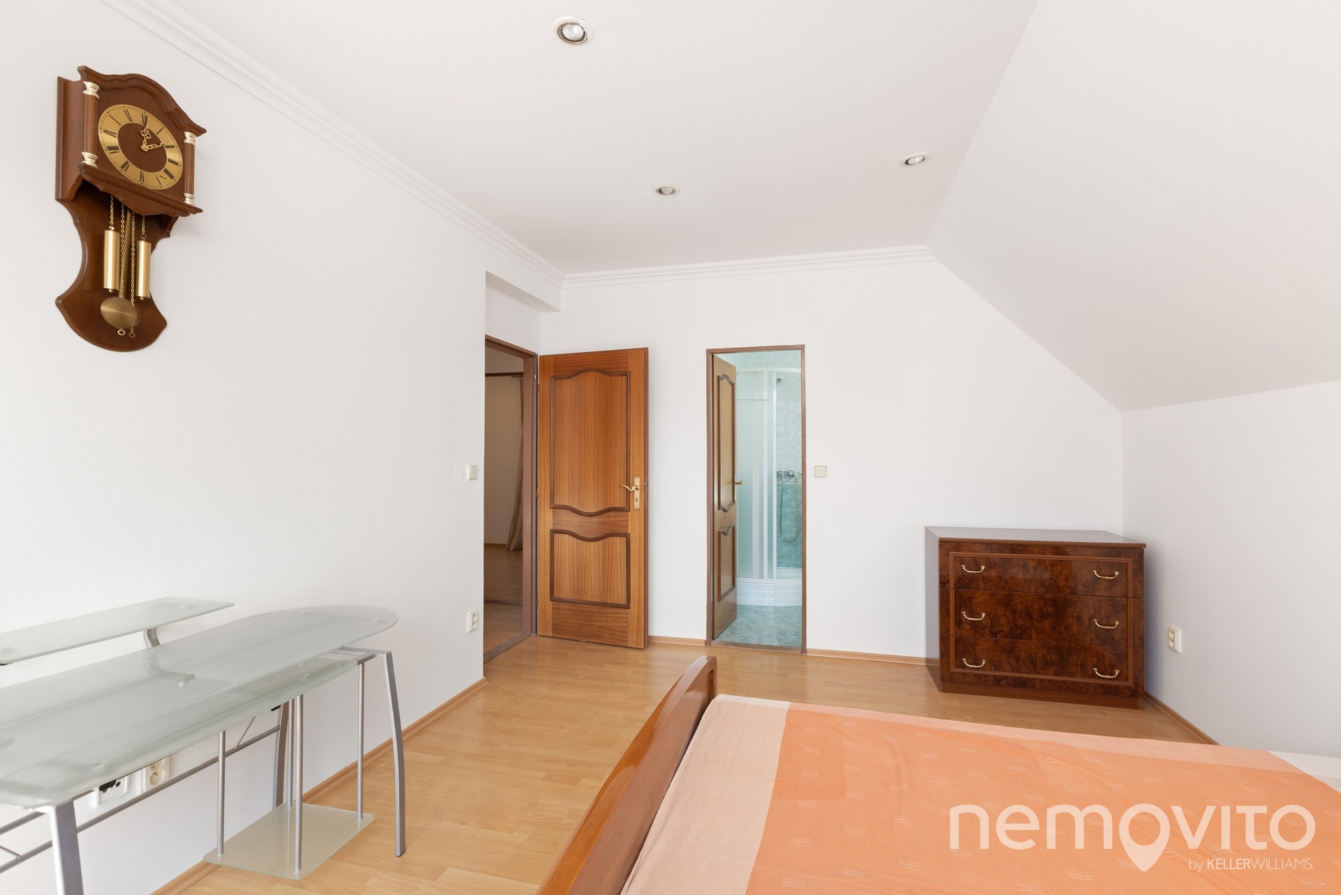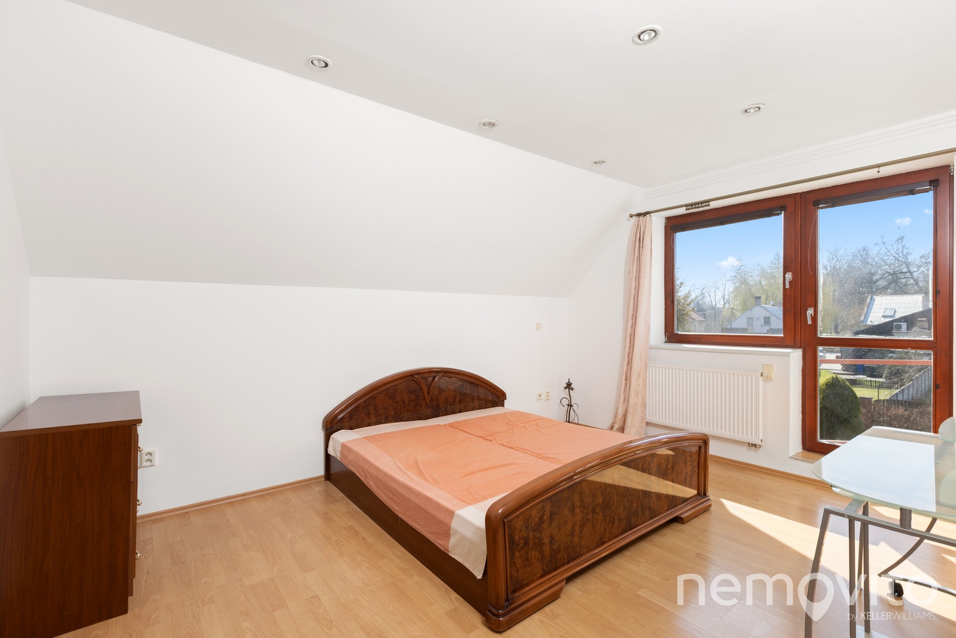 Horní podlaží tvoří 3 ložnice a 2 koupelny. Velikosti pokojů jsou 10, 13 a 16 m2. Ve štítu domu je pak výstup na balkon (3 m2). Zahrada (971 m2 bez plochy domu) je sdílená a její rozdělení k užívání je možné dle dohody, nicméně k dispozici bude ta část, která náleží k levé či pravé polovině stavby. Nemovitost se nachází v lokalitě Zámostí, tedy zhruba 500 m pěšky od Jiřího náměstí. Okolí tvoří pouze několik domů, přičemž tento je ve druhé řadě od řeky Labe. Dům bude pronajat výhradně dlouhodobě, a to spolehlivému a prověřenému nájemci.