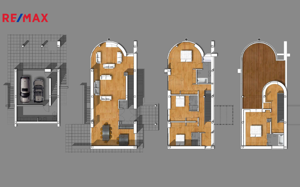 Třípodlažní vila o dispozici 5+kk a užitné ploše 323 m² (plus terasy) vyniká světlým obytným prostorem o 110 m² s výškou stropu 3,85 m. Obytná zóna navazuje na terasovou část s vyhřívaným bazénem (10×5 m) a okrasnou vodní plochou s přepadem.