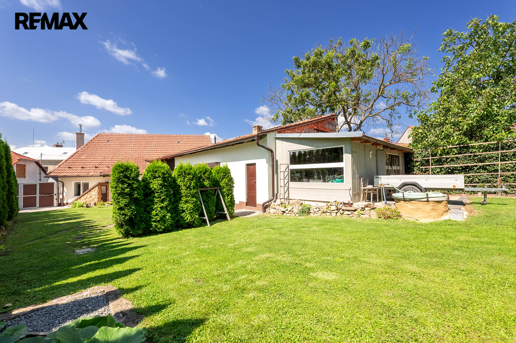 Ve dvorním traktu se nachází samostatný apartmán o dispozici 1+kk s kuchyňskou linkou a koupelnou se sprchovým koutem, umyvadlo, WC, vytápění samostatným plynovým kotlem. Vjezd do dvora je vraty z hlavní ulice, kde můžou parkovat až 2 auta a garáž o výměře 16m2. Vedle garáže se nachází místnost 10m2 a dílna o výměře 17m2 pro kutily. Dům je částečně podsklepený, kde se nachází technické zázemí domu pro vytápění (ohřev vody, zajišťuje plynový kotel a kotel pro tuhá paliva ( pelety) - náklady na rok 20000 Kč, velmi nízké provozní náklady. V druhé části se nachází klenbový sklep o výměře 7,2m2. RD byl zcela zrekonstruován, z ulice je RD zateplený izolační deskovou vatou, nová fasáda, podlahy, rozvody, technické zázemí, sociální zázemí, střecha původní v dobrém technickém stavu. Vchod do RD je z ulice i ze dvora. Dům má krásnou okrasnou zahradu s posezením ve vnitrobloku (oáza klidu). Zdi jsou obloženy SDK. Ze zadní části je vstup do sadu, který má 2106m2 . V sadu se nachází ovocné stromy, keře i zde možnost záhonů pro pěstování. Na pozemku se nachází zahradní domek na ukládání nářadí a potřeb pro údržbu sadu. Dle územního plánu je tento pozemek v navrhované ploše Br. - bydlení v rodinných domech. Současné náklady na bydlení RD je 1400 Kč elektřina, 400 Kč plyn měsíčně, voda 200 Kč ročně, RD má vlastní studnu, ale je i napojený na řád. V obci Podomí se nachází mateřská školka, základní devítiletá škola, obchod s potravinami, restaurace.
