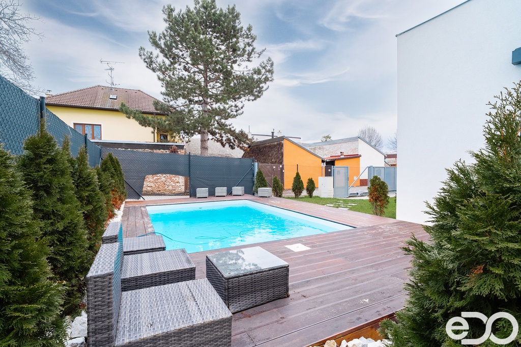 Velkým bonusem je, že se dům prodává s kvalitním a moderním nábytkem, který byl navržen na míru, takže se můžete rovnou nastěhovat bez starostí s vybavováním.