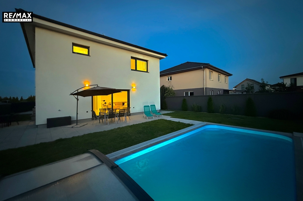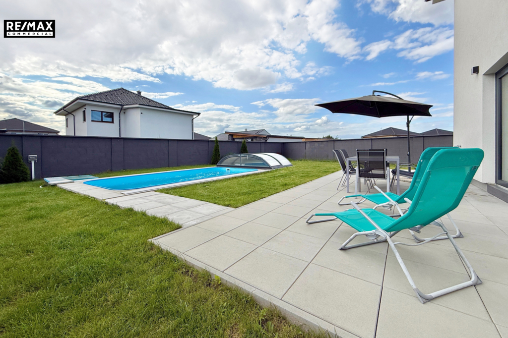 • Prostornost a vybavení domu – Každý člen rodiny bude mít soukromí. Díky velké zahradě a bazénu si užijete celé léto přímo doma.