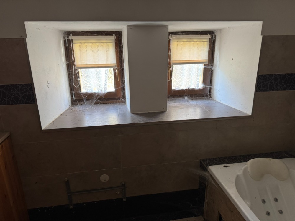 zejména žlaby a svody, jsou nově instalované, některé detaily spojů či napojení nejsou dokončeny.