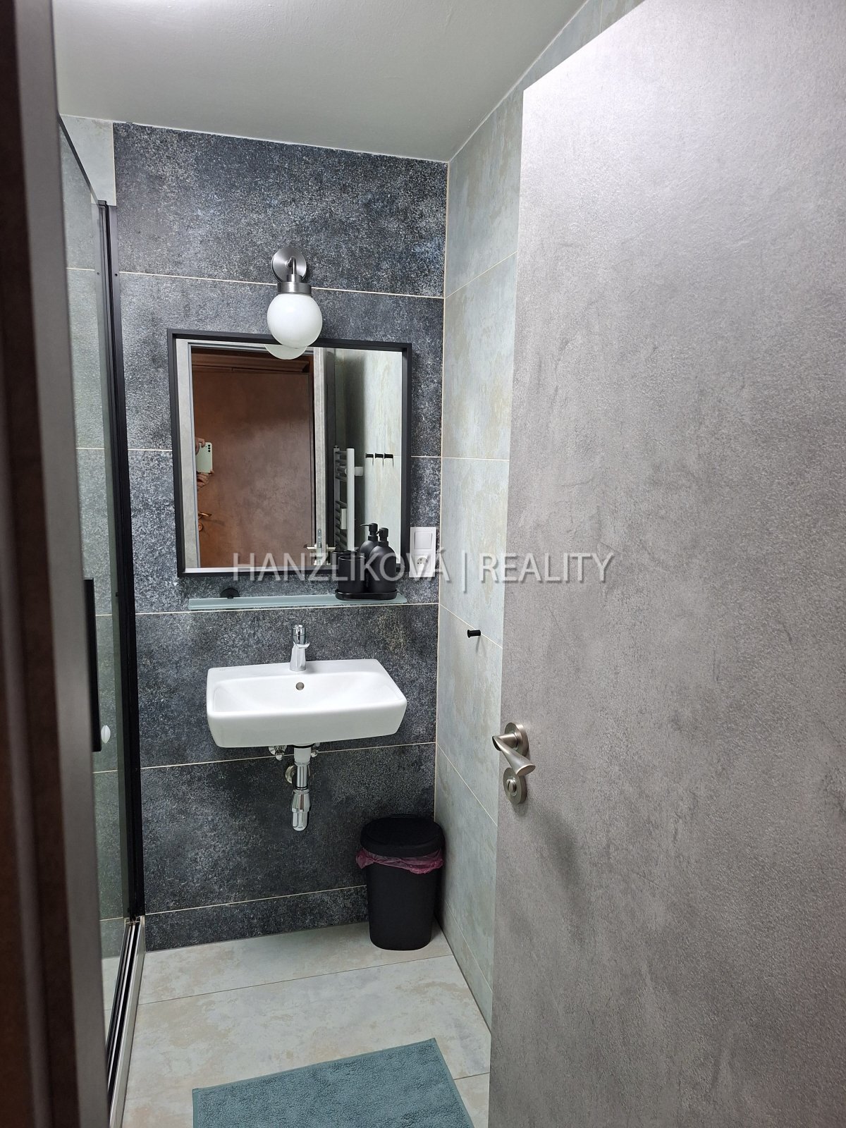 Kuchyňská linka: indukční varná deska, horkovzdušná trouba, myčka, digestoř, vestavná lednice, keramický dřez. Koupelna: sprchový kout, WC, umyvadlo. Další vybavení: intercom, rolety a sítě v oknech.