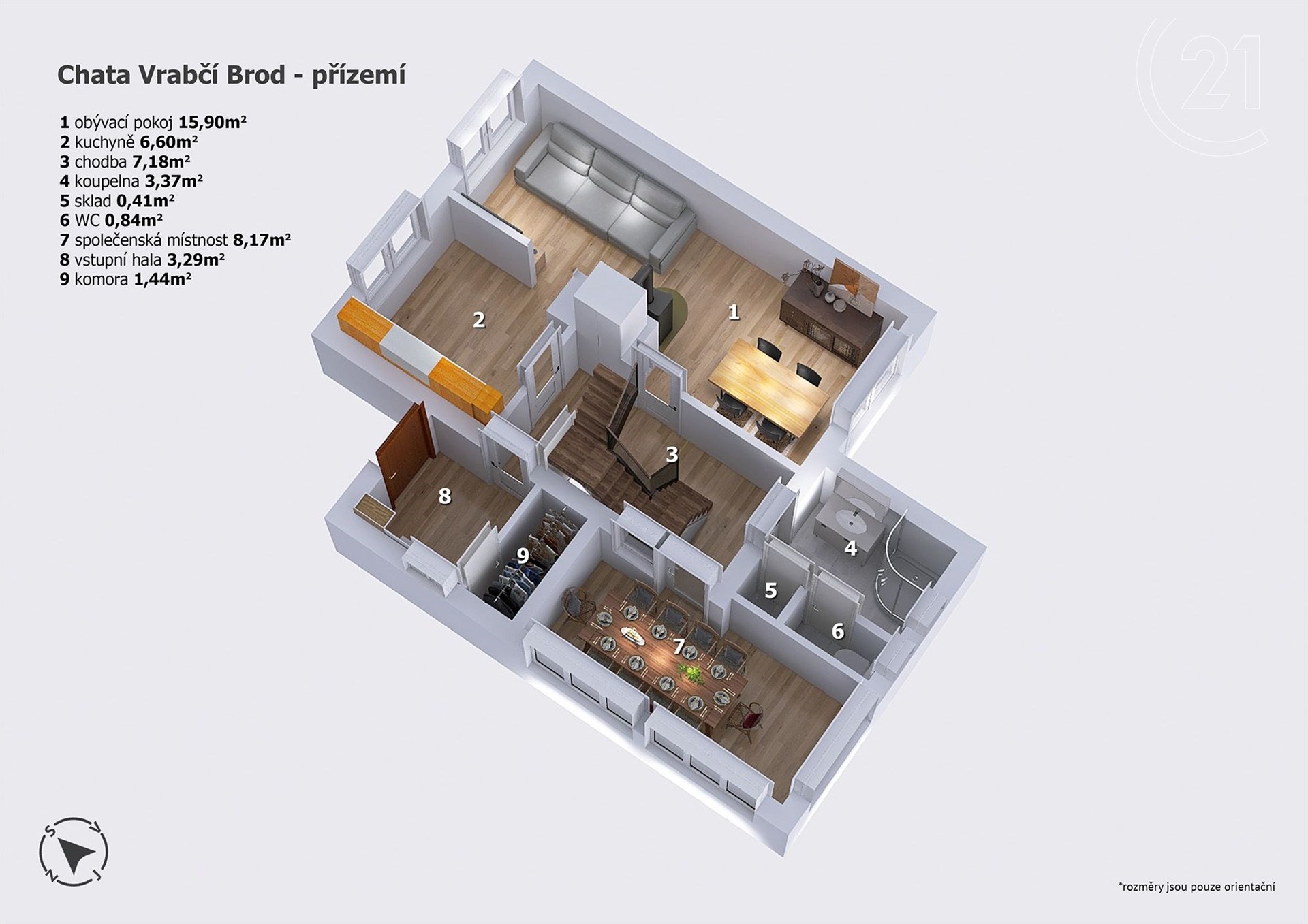 Současná dispozice domu je funkční, pokud nemáte přehnané nároky, můžete se hned nastěhovat a začít bydlet. Zároveň však nabízí velký potenciál pro úpravy – například otevření obývacího prostoru s kuchyní, zvětšení koupelny nebo celkové zvýšení komfortu zavedením moderního vytápění v podobě elektro kotle ve spojení se solárními panely.