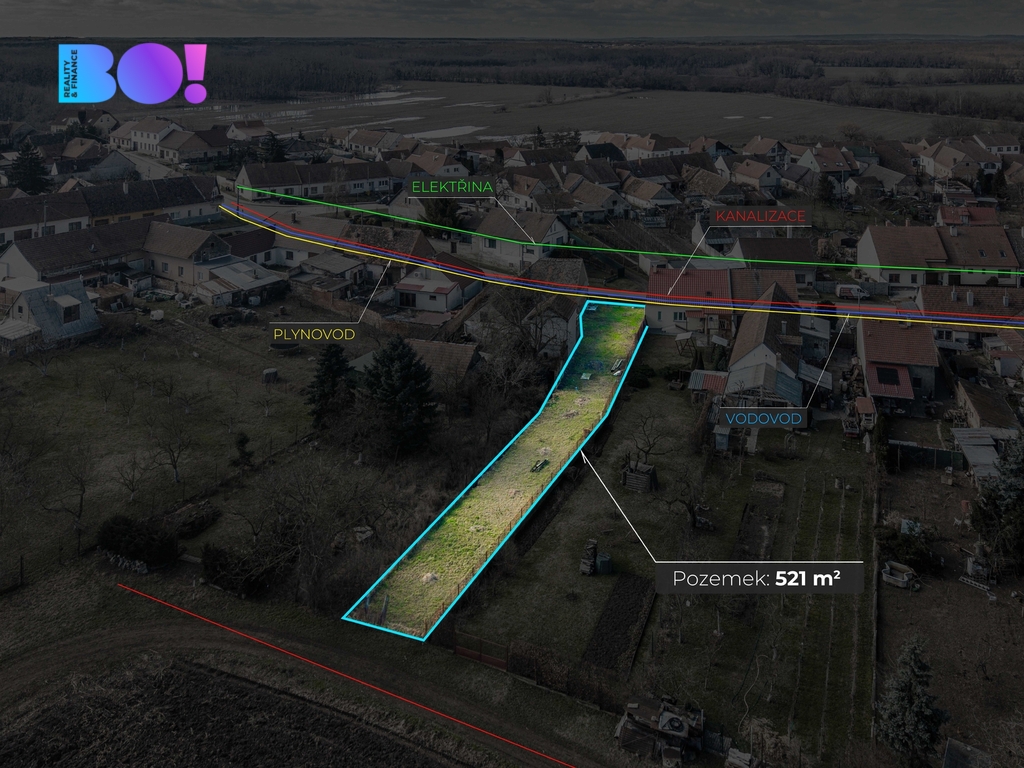 Prodej stavebního pozemku 521 m², ul. Zadní, Pouzdřany, okres Břeclav