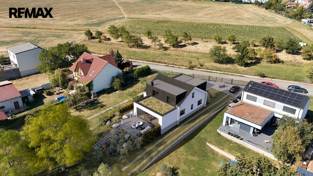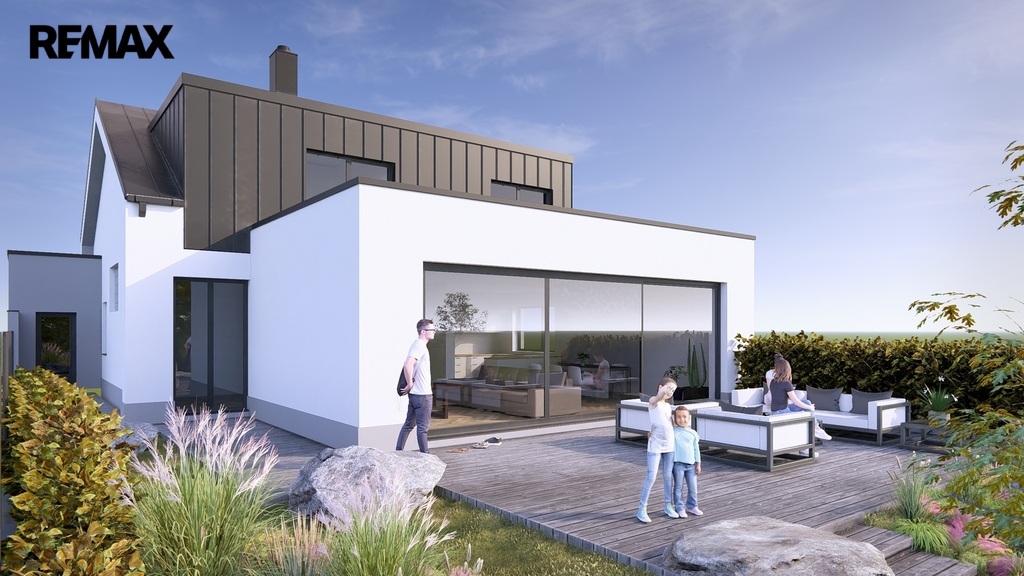Na pozemek je již vydáno platné stavební povolení na výstavbu moderního rodinného domu o dispozici 6+kk, s garáží a celkovou užitnou plochou cca 277 m² a zastavěnou plochou 219 m2. Cena zahrnuje výstavbu hrubé stavby, která bude realizována na základě konkrétní dohody. Součástí hrubé stavby jsou základy, hydroizolace, vodorovné a svislé konstrukce, zastřešení včetně klempířských a zámečnických prvků. Dokončení domu je možné podle přiložených vizualizací.