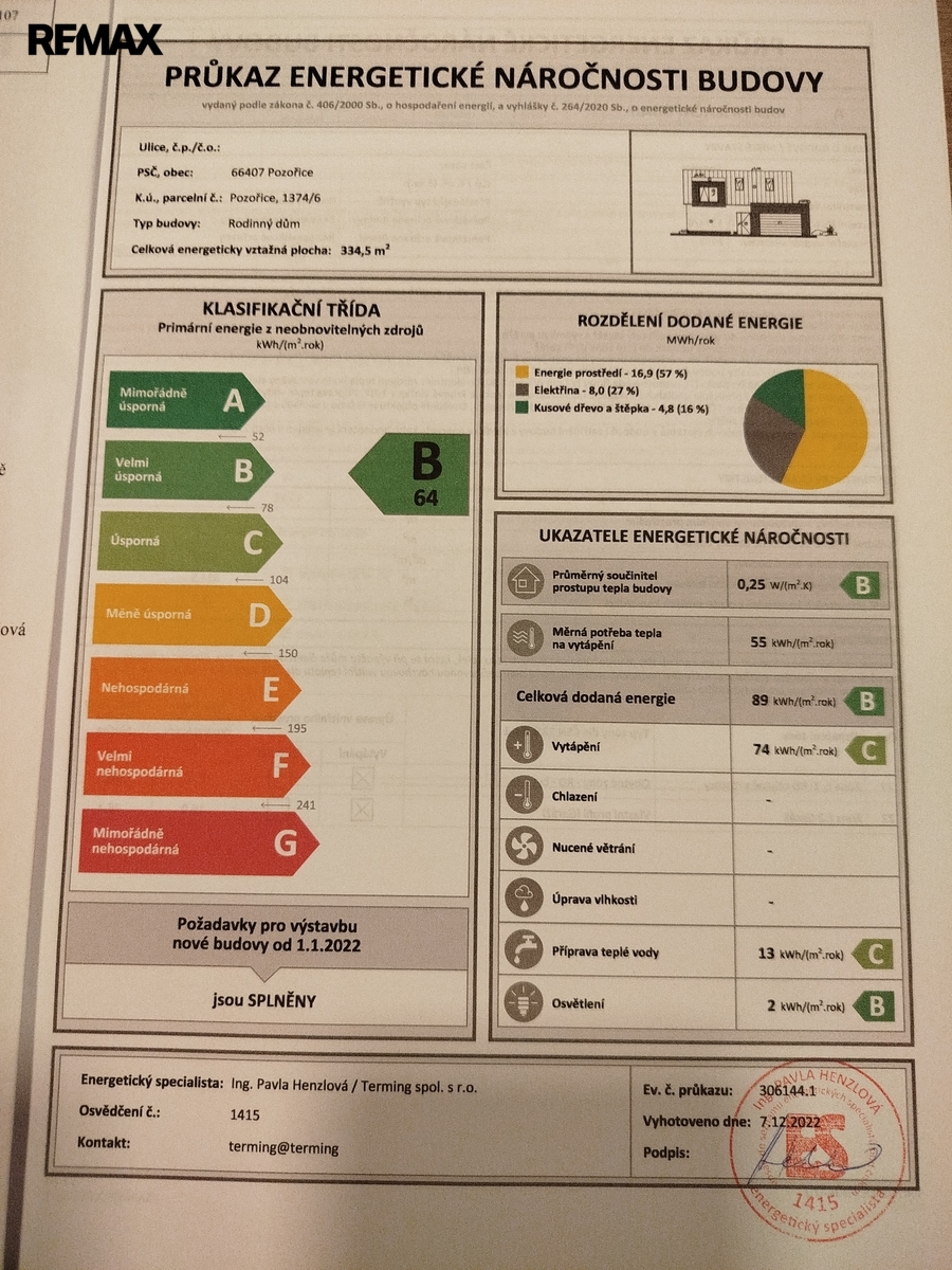 - Energetický ukazatel podle vyhlášky: č. 264/2020 Sb.