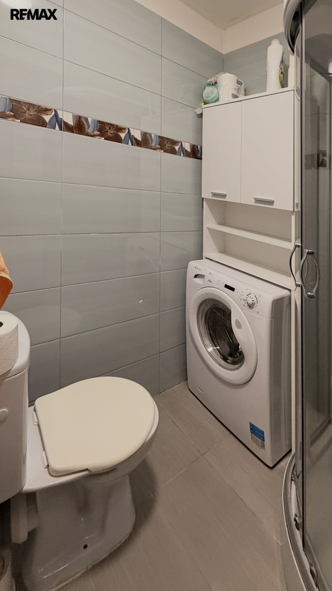 • Koupelna: Zděná koupelna disponuje praktickým sprchovým koutem a prostorem pro pračku.