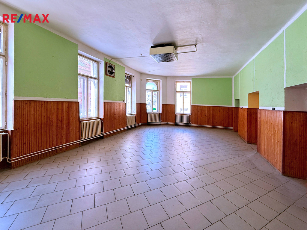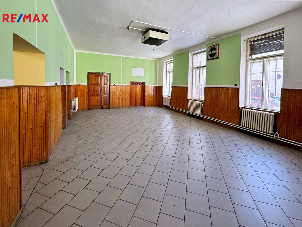 1.NP (300 m²) – Prostor využívaný jako restaurace: výčep, hlavní sál, toalety, zázemí pro kuchyni, šatna a sklad. Druhý východ vede do dvora. Dále zde najdete samostatnou obchodní jednotku s výlohami.