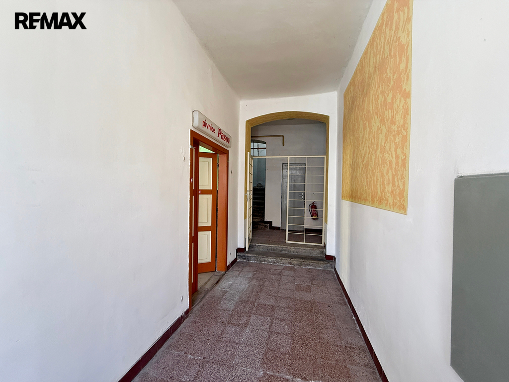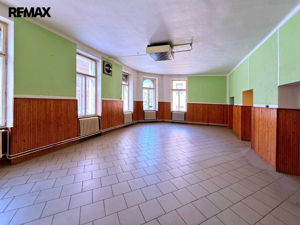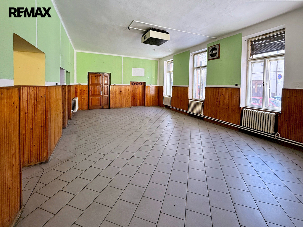 1.NP (300 m²) – Prostor využívaný jako restaurace: výčep, hlavní sál, toalety, zázemí pro kuchyni, šatna a sklad. Druhý východ vede do dvora. Dále zde najdete samostatnou obchodní jednotku s výlohami.