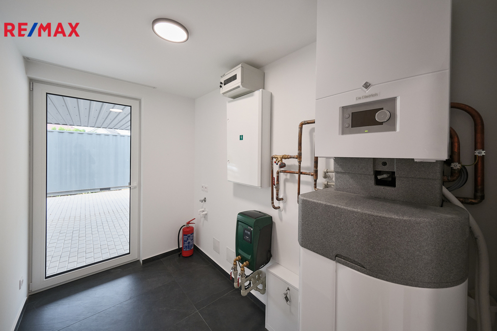 Tento mimořádně úsporný dům s energetickou náročností třídy A, vám umožní žít efektivně s nízkými náklady. Vytápění je zajištěno tepelným čerpadlem vzduch/voda DE DIETRICH 6kw, které je spolehlivě doplněno podlahovým topením v přízemí a radiátory v horním patře. Možnost instalace fotovoltaické elektrárny, která vám umožní vyrábět vlastní energii.