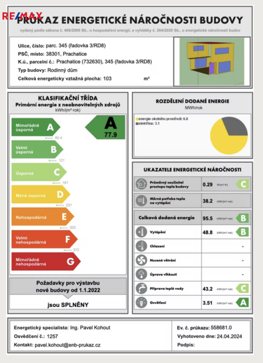 - Energetická náročnost budovy: A - Mimořádně úsporná