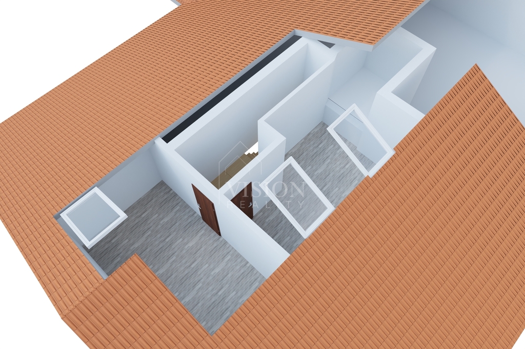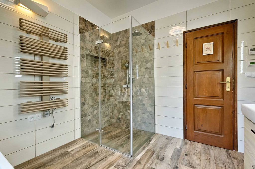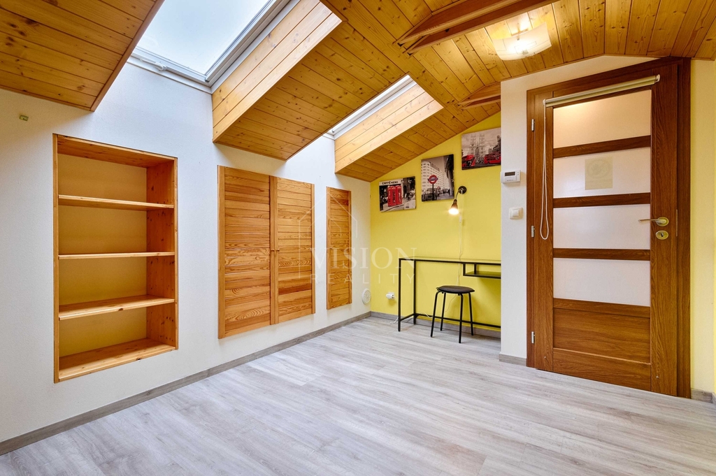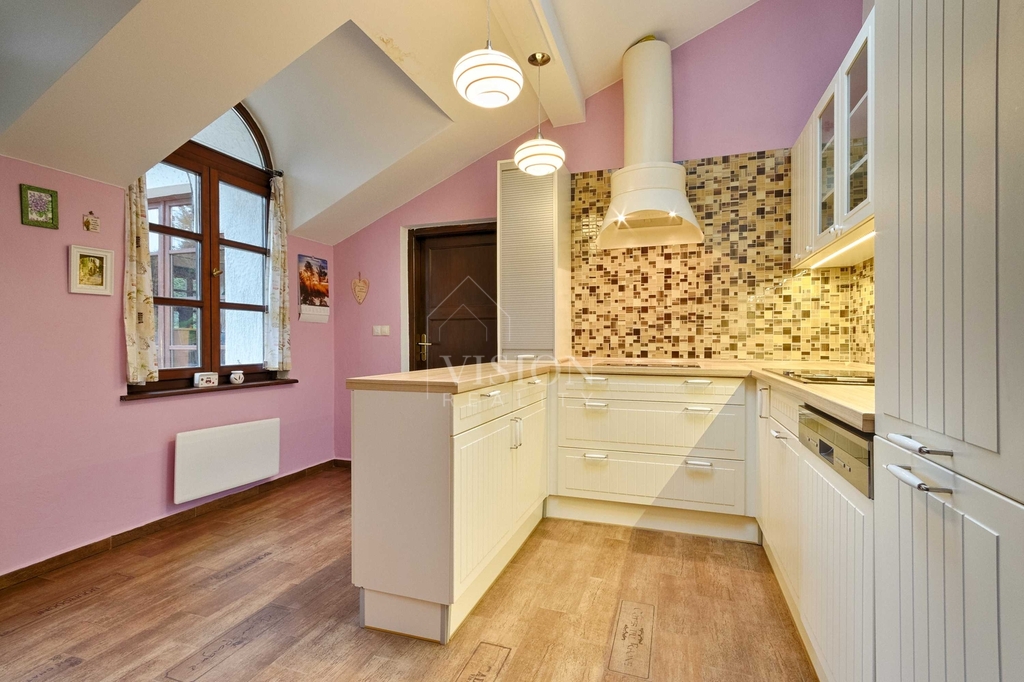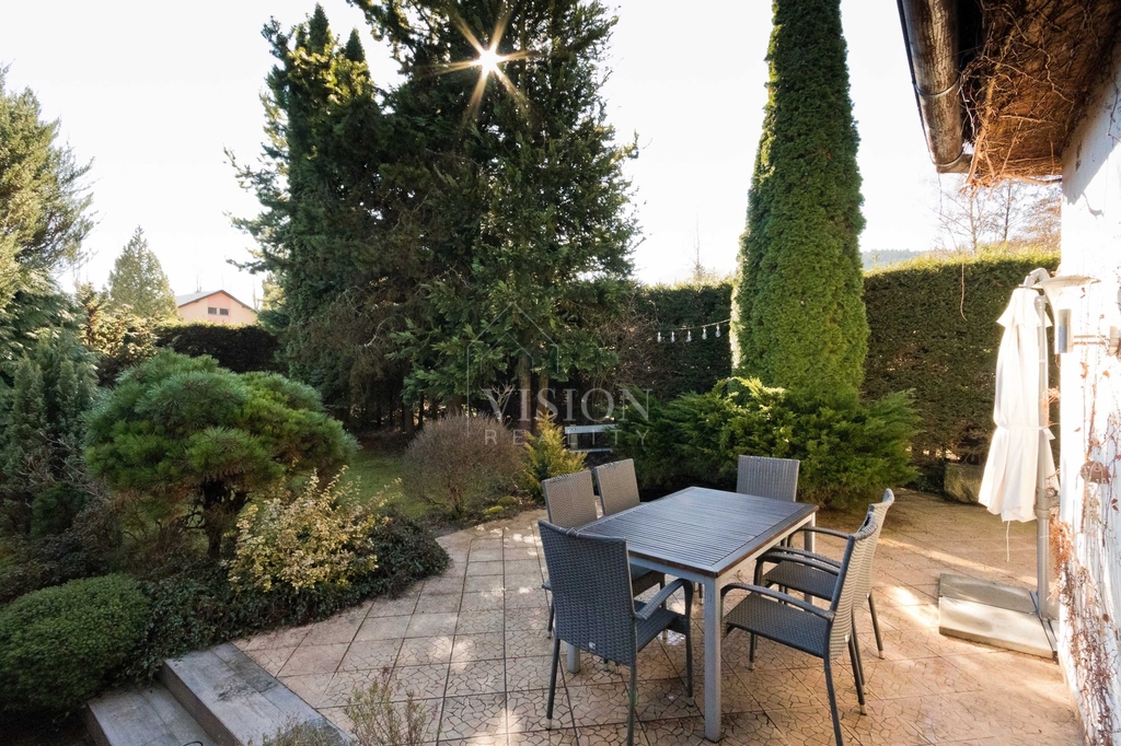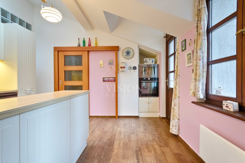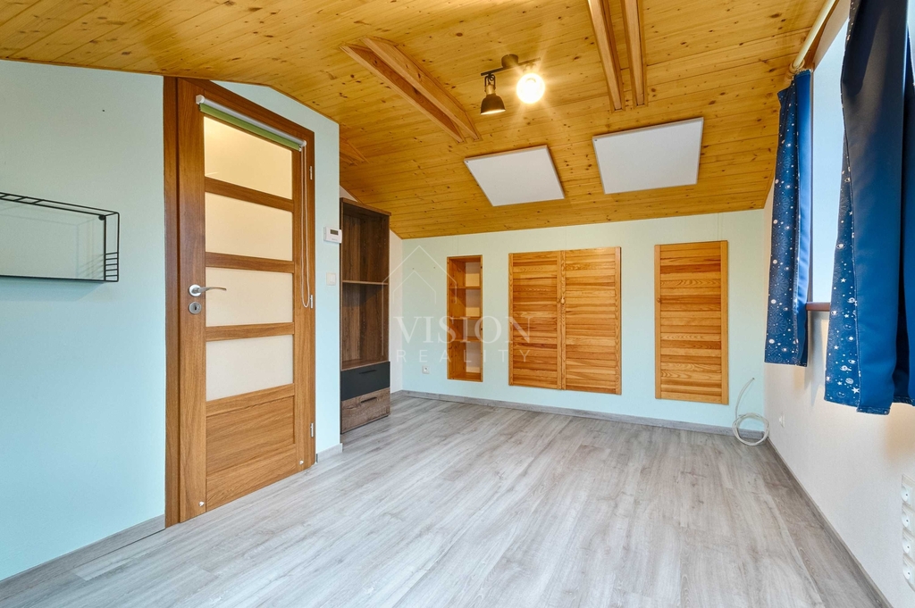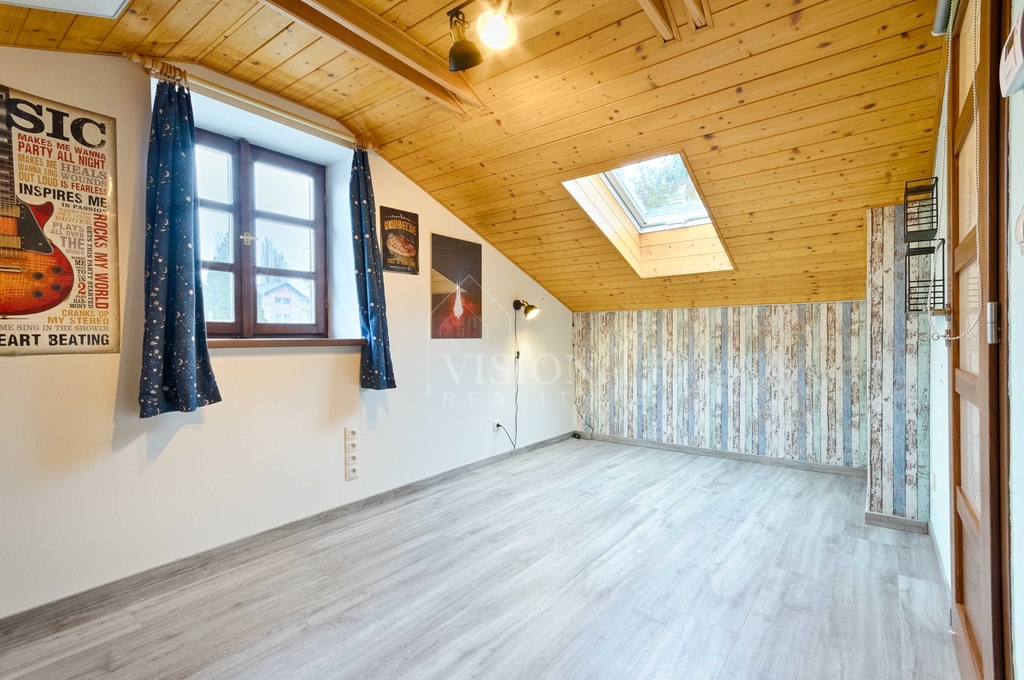 V patře se pak nachází další dva útulné pokoje. Na dům navazuje velkorysá garáž nejen pro zaparkování auta, ale i pro uložení sezónních věcí, nářadí atd. I zde je také samostatné WC.