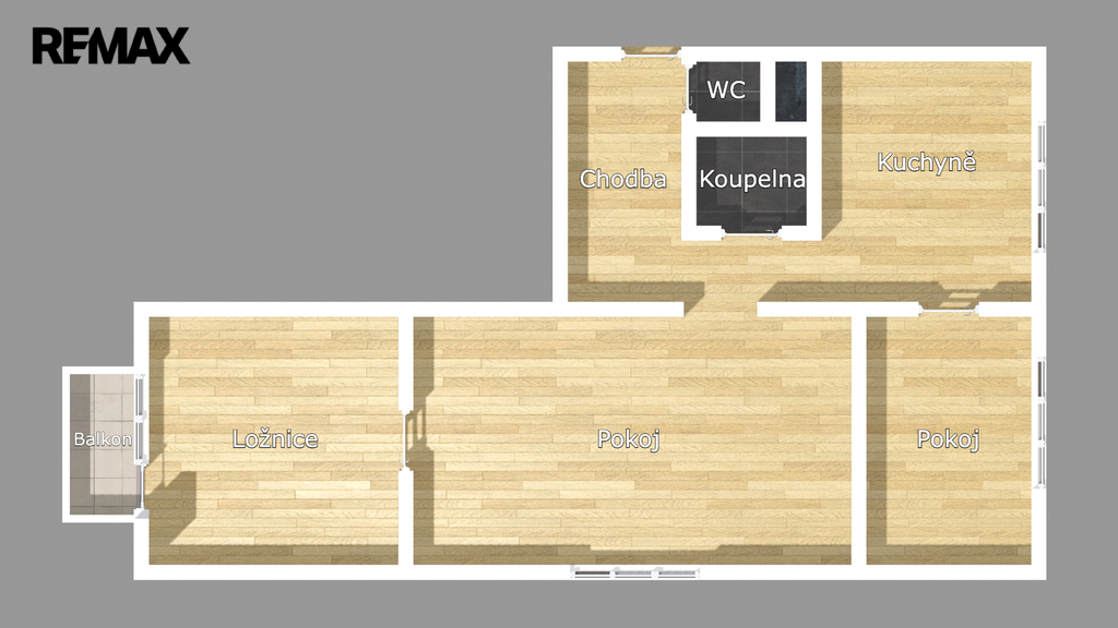 Byt o celkové výměře 65,11 m² doplňuje balkon o ploše 4,32 m² a prostorný sklep cca 5 m². Nabízí praktické dispoziční řešení a příjemnou orientaci na tři světové strany – obývací pokoj na jih, kuchyně a pokoj na východ a ložnice s balkonem na západ.