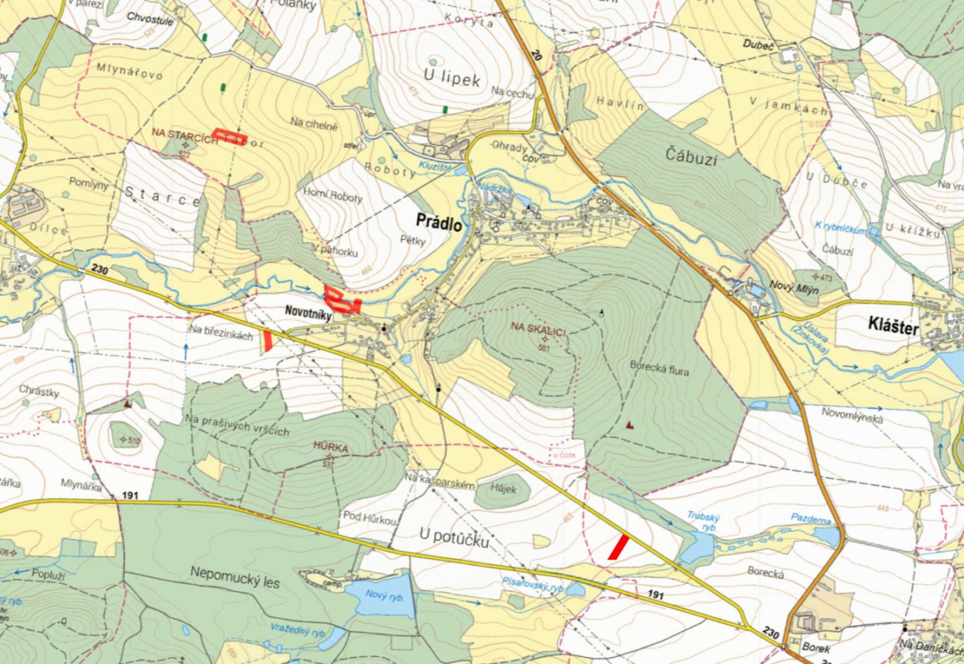 Katastrální území Prádlo, celková výměra 6 088 m2