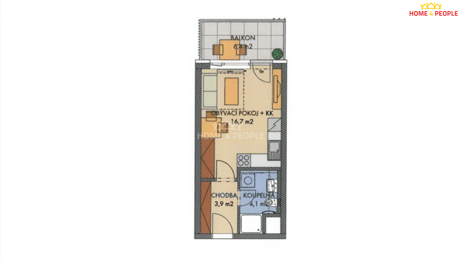 | Dispozice/podlahová plocha: | 1+kk/26 m² |