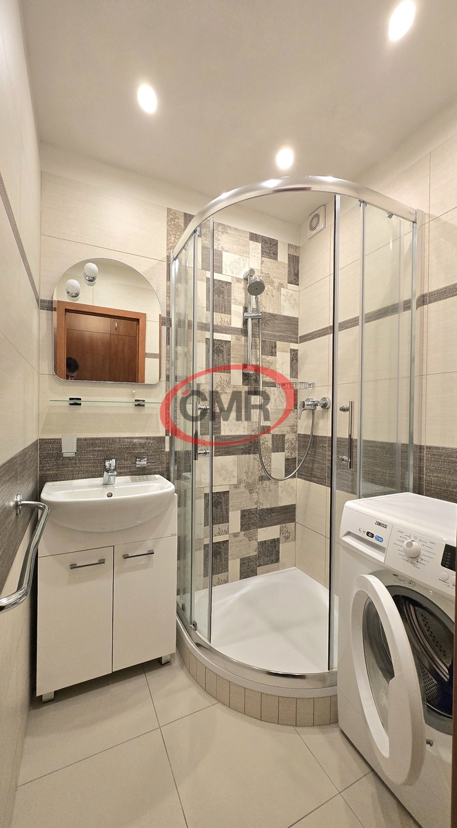 Koupelna je vybavena sprchovým koutem a místem pro pračku (je již instalována). Samostatná toaleta je velké plus. Pro maximální pohodlí v předsíni nalezneme vestavěné šatní skříně, které nabízejí dostatek úložného prostoru pro oblečení a další věci.