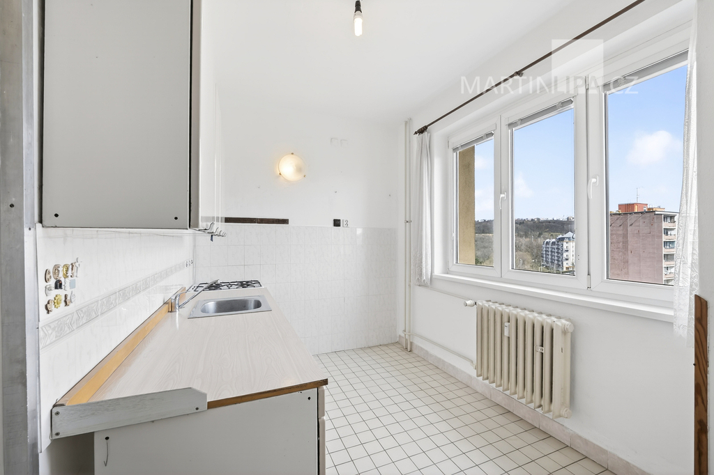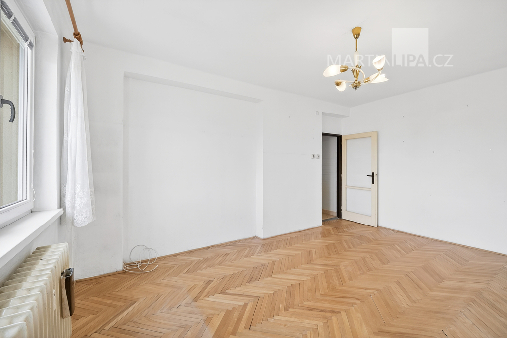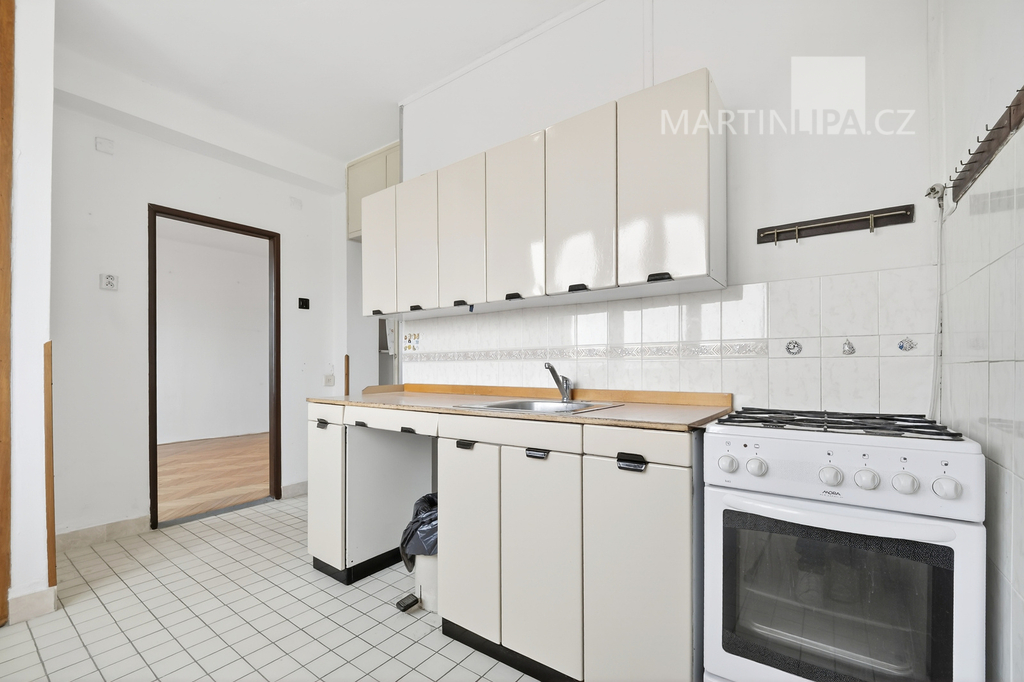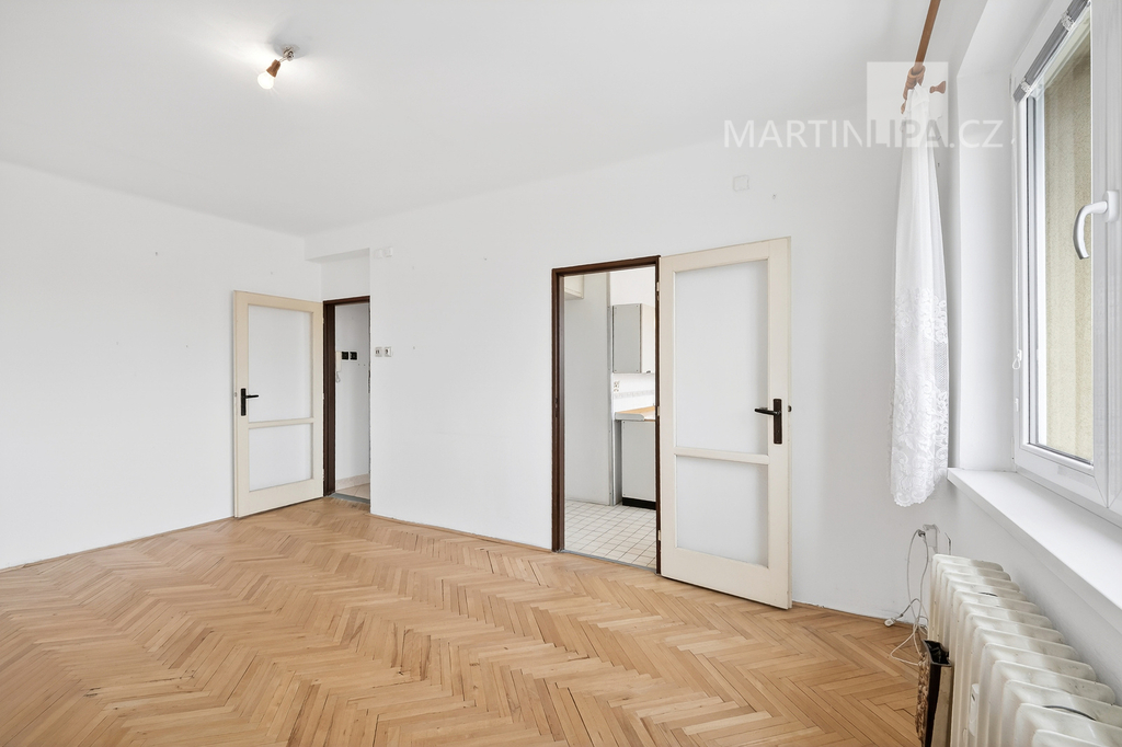 Kuchyň je zde opravdu samostatným prostorem s vlastním oknem. To je přesně ten typ dispozice, který vám nechává svobodu. Můžete si ponechat klasické, praktické 2+1, nebo při rekonstrukci koncept posunout dál a otevřít byt modernějšímu stylu života tím, že ji propojíte s obývákem.