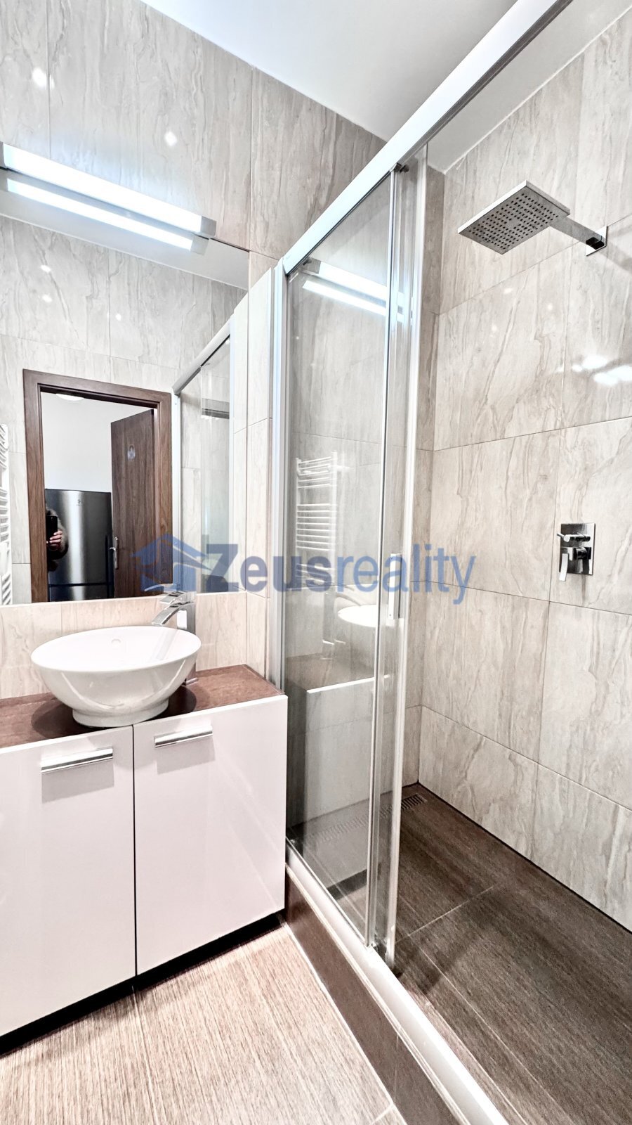 Nabízím hezký byt k pronájmu ve třetím nadzemním podlaží, byt má dva pokoje a z toho jeden je průchozí a je s kuchyňským koutem a druhý pokoj je samostatný, koupelna je se sprchovým koutem, koupelnová skříňka a nad umyvadlem je zrcadlo, samostatné WC je s umývadlem, ve vybavení bytu je kuchyňská linka,lednice s mrazákem,myčka, sklokeramická varná deska, trouba na pečení,nerezový dřez,digestoř, pračka, stůl, židle,dvoupostel,vestavěná šatní skříň, police, gauč,žaluzie, osvětlení, na podlaze dlažba a plovoucí podlaha, topení a ohřev teplé vody přes plynové etážový kotel, internet,MHD - 3.minuty tramvaj, autobus a dále metro