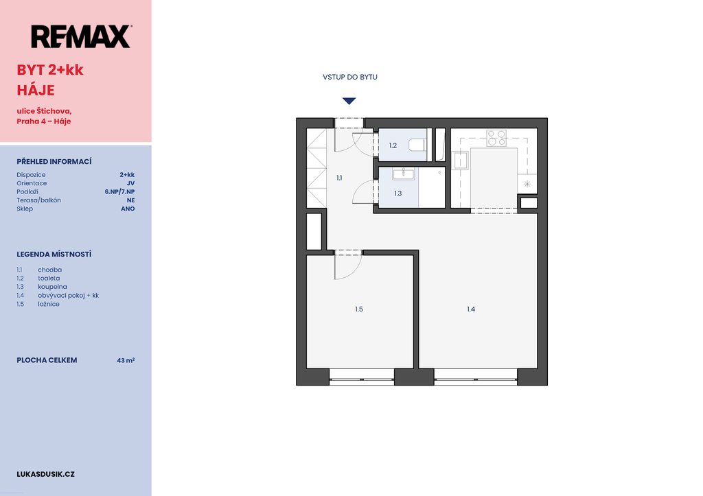 - Užitná plocha: 43 m²