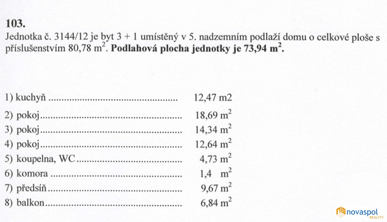 | Dispozice/podlahová plocha: | 3+1/74 m² |