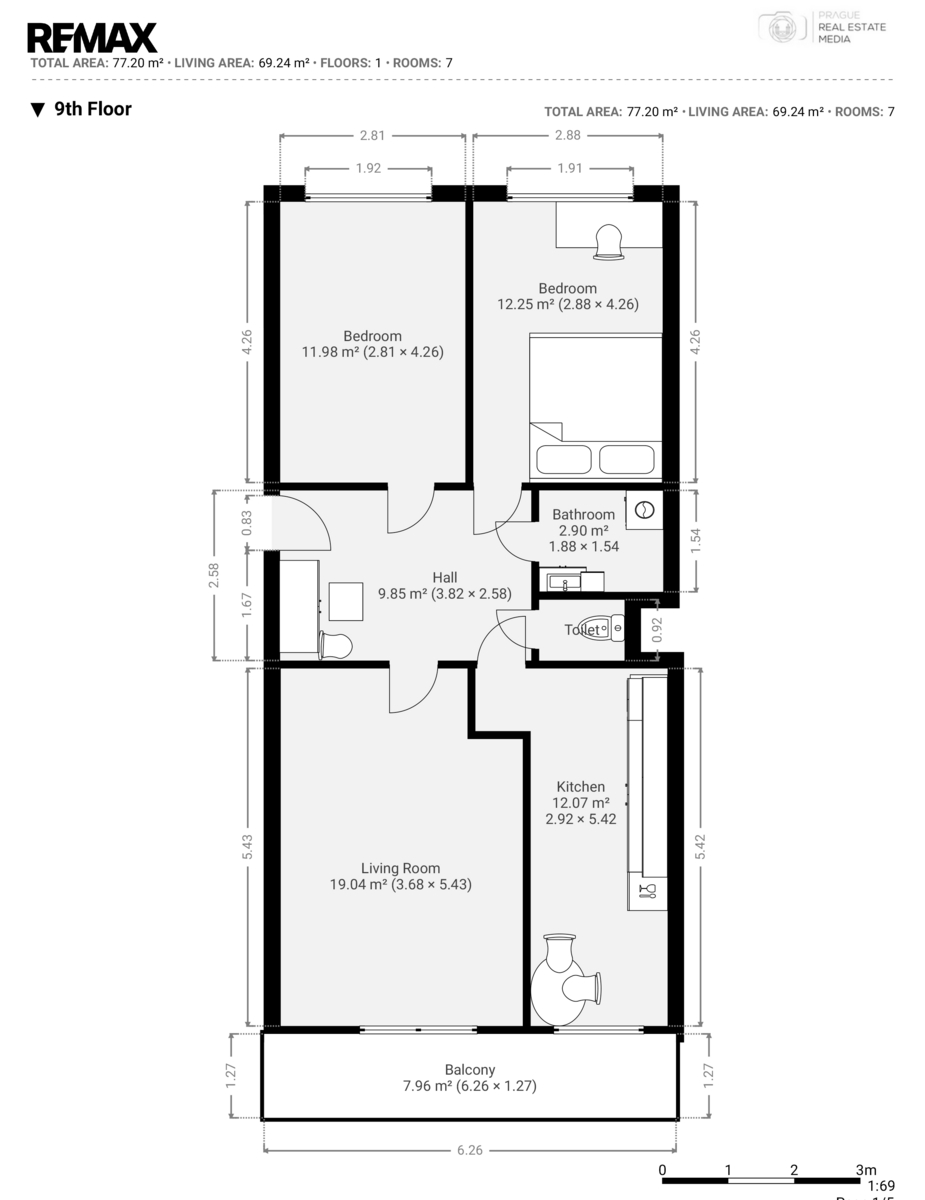 | Dispozice/podlahová plocha: | 3+1/70 m² |