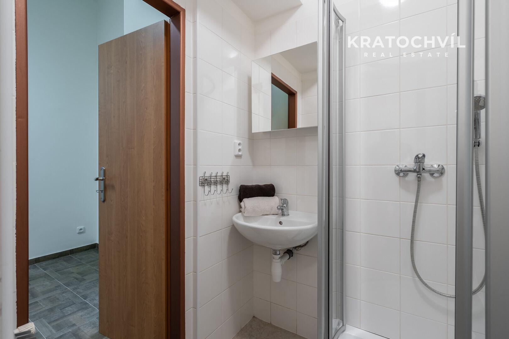 V koupelně se nachází sprchový kout, umyvadlo a toaleta. Vytápění i ohřev vody zajišťuje vlastní plynový kotel, což umožňuje regulovat provozní náklady.