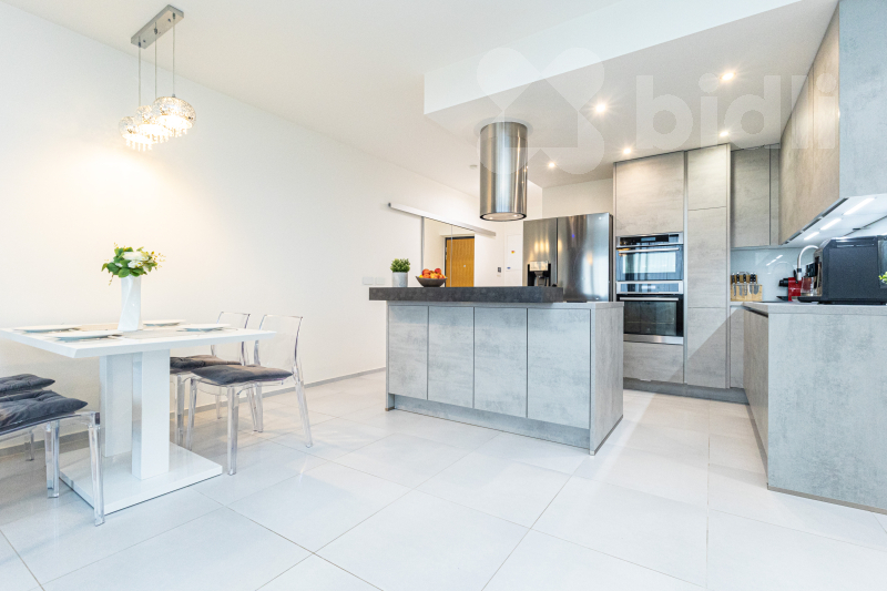 • otevřený obývací prostor s moderní kuchyní a ostrůvkem, integrovanou vinotékou a designovou digestoří
