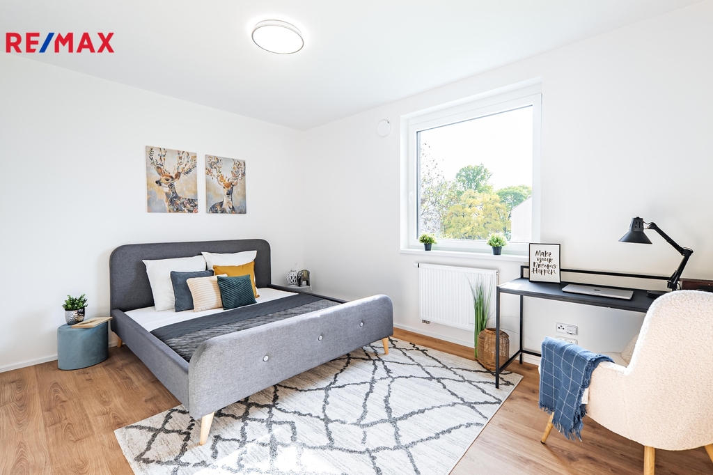 Součástí bytu je kompletně vybavená kuchyňská linka včetně spotřebičů Electrolux a myčky. V celém bytě jsou kvalitní podlahy Egger, interiérové dveře Sapeli a koupelna je vybavena sanitou Laufen. Samozřejmostí je příprava na venkovní žaluzie. Opravdu prostorná ložnice nabízí dostatek místa pro šatnu i pracovní kout. V bytě se nachází také komora a v chodbě je prostor pro další úložné řešení. Velký balkón poskytuje příjemné místo pro posezení a odpočinek.