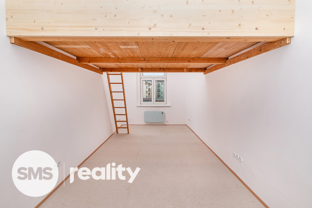 Ideální dispoziční řešení - vstupní hala s šatní skříní a samostatnými vstupy do všech místností: obývacího pokoje s kuchyňskou linkou a všemi spotřebiči, ložnice s dřevěným patrem. které plochu pokoje rozšíří o dalších 5 m2, druhý pokoj, samostatná toaleta s umyvadlem, koupelna se walk-in sprchovým koutem a komora v bytě.